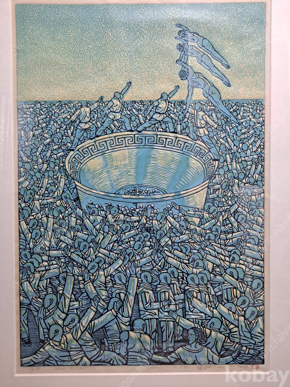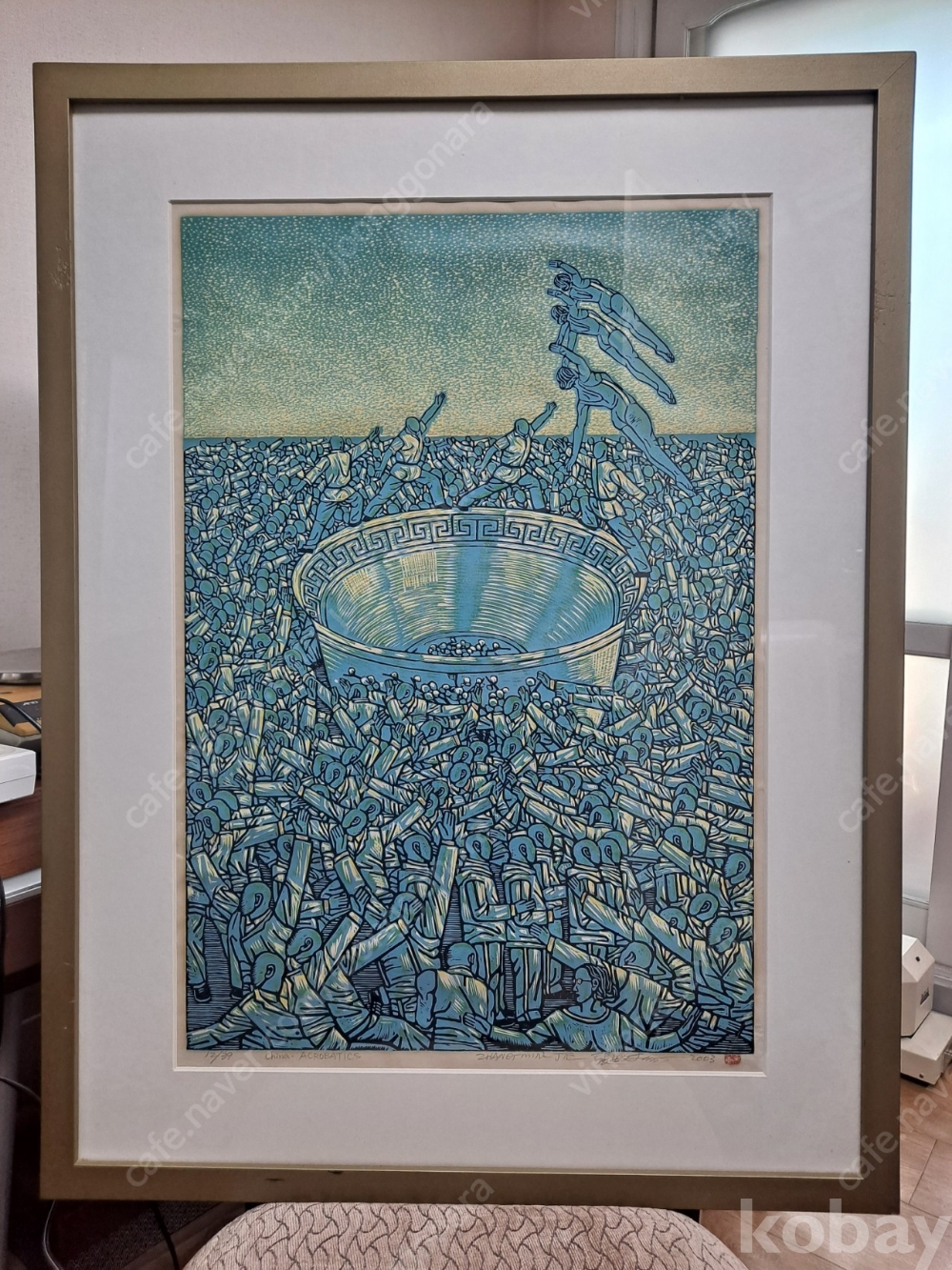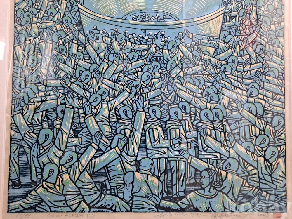 장민지에의 2003년 제작된 인기 연작 China Acrobatics 시리즈의 전체 39장 어디션중두15번째 작품. 작품은 국내 전시회 구매작품으로 20호남짓한 사이즈의 대형 목판화 작품인데다 39장의 소량 어디션으로 작품가치 재테크가치 출중합니다.
