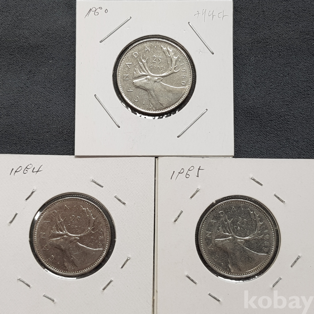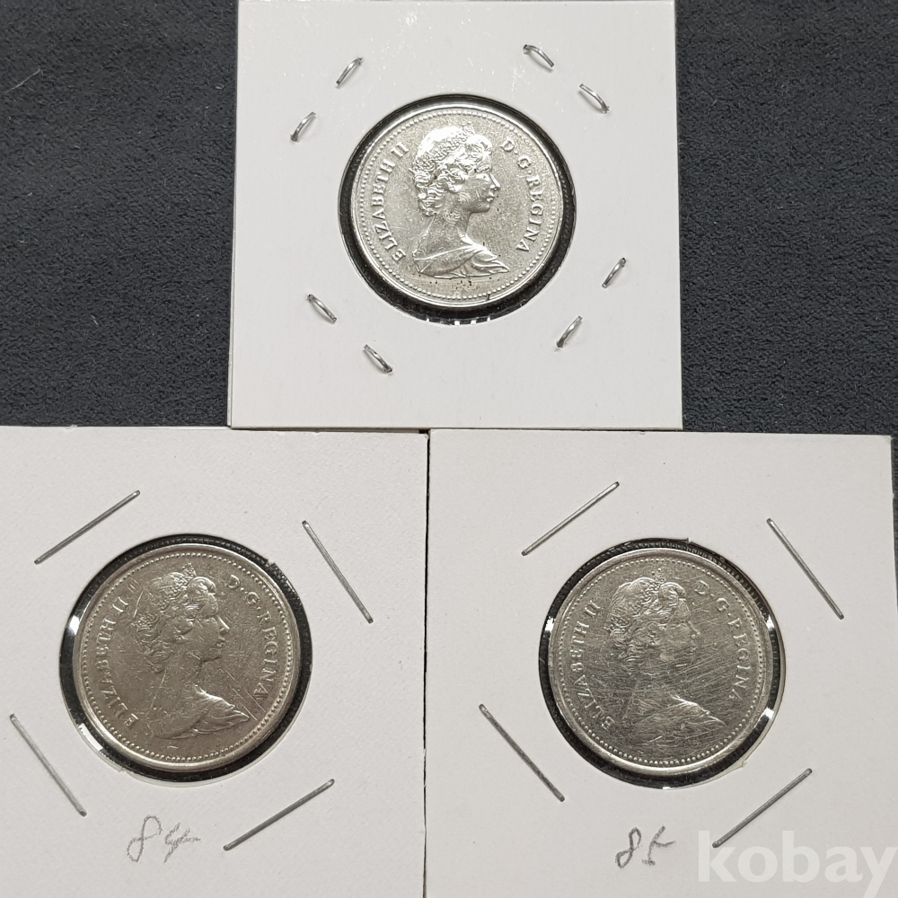 - 1980년대 캐나다 25센트 주화 3종 모음