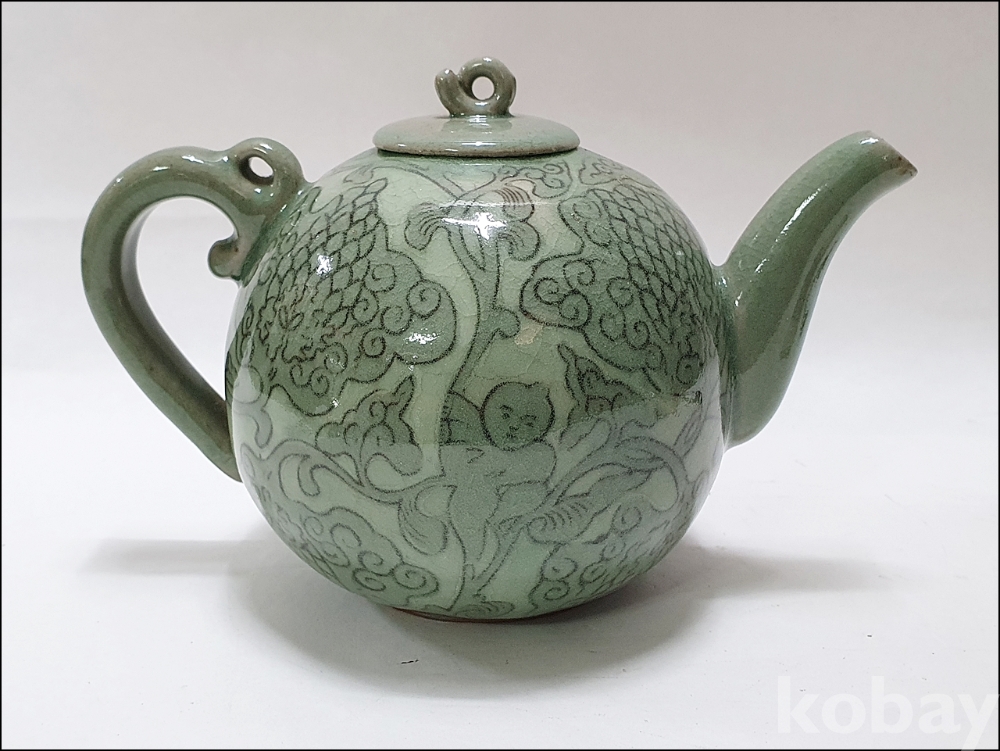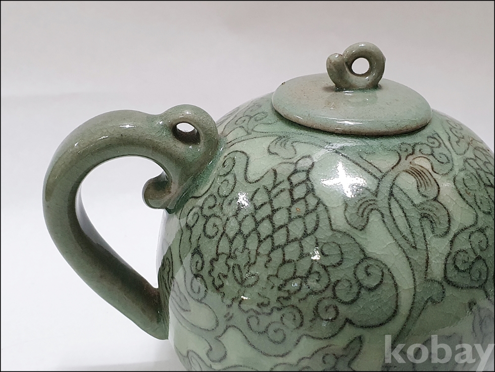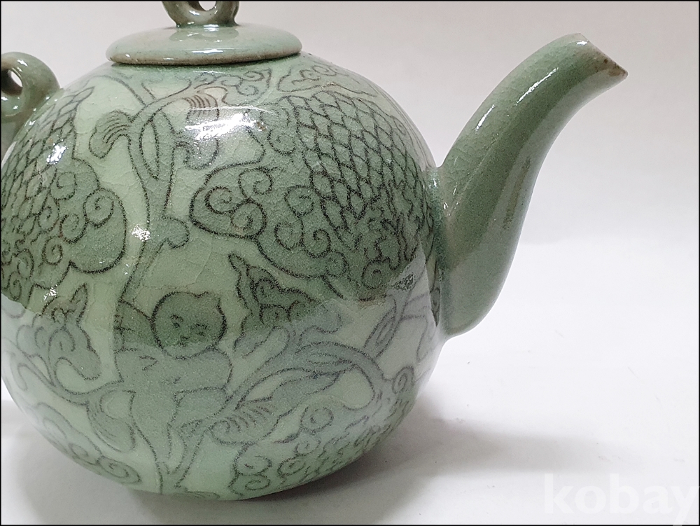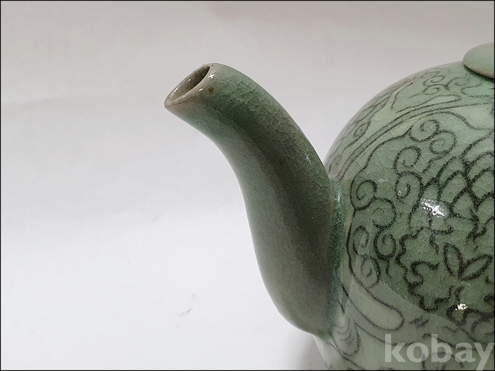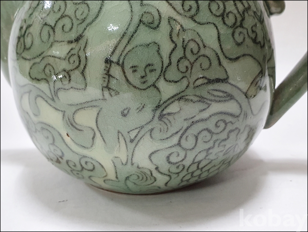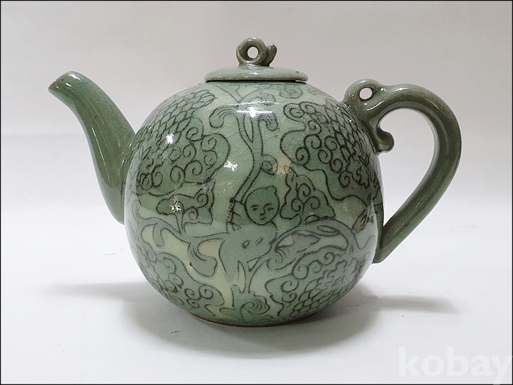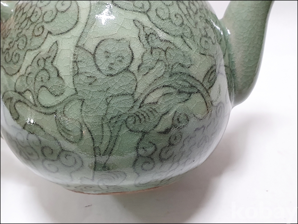 품 명: 청자 흑백상감 동자문 주전자