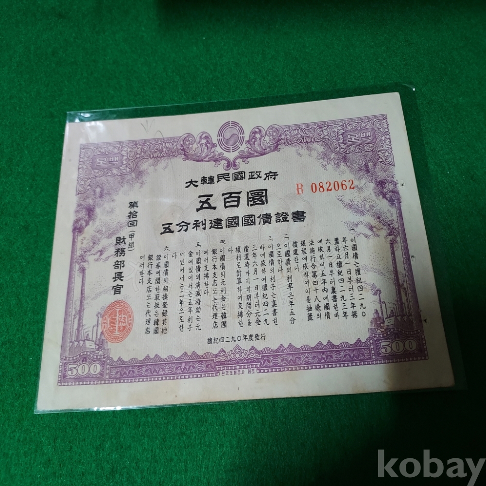 대한민국 1957년 건국채권 10회갑조 500환 사용제