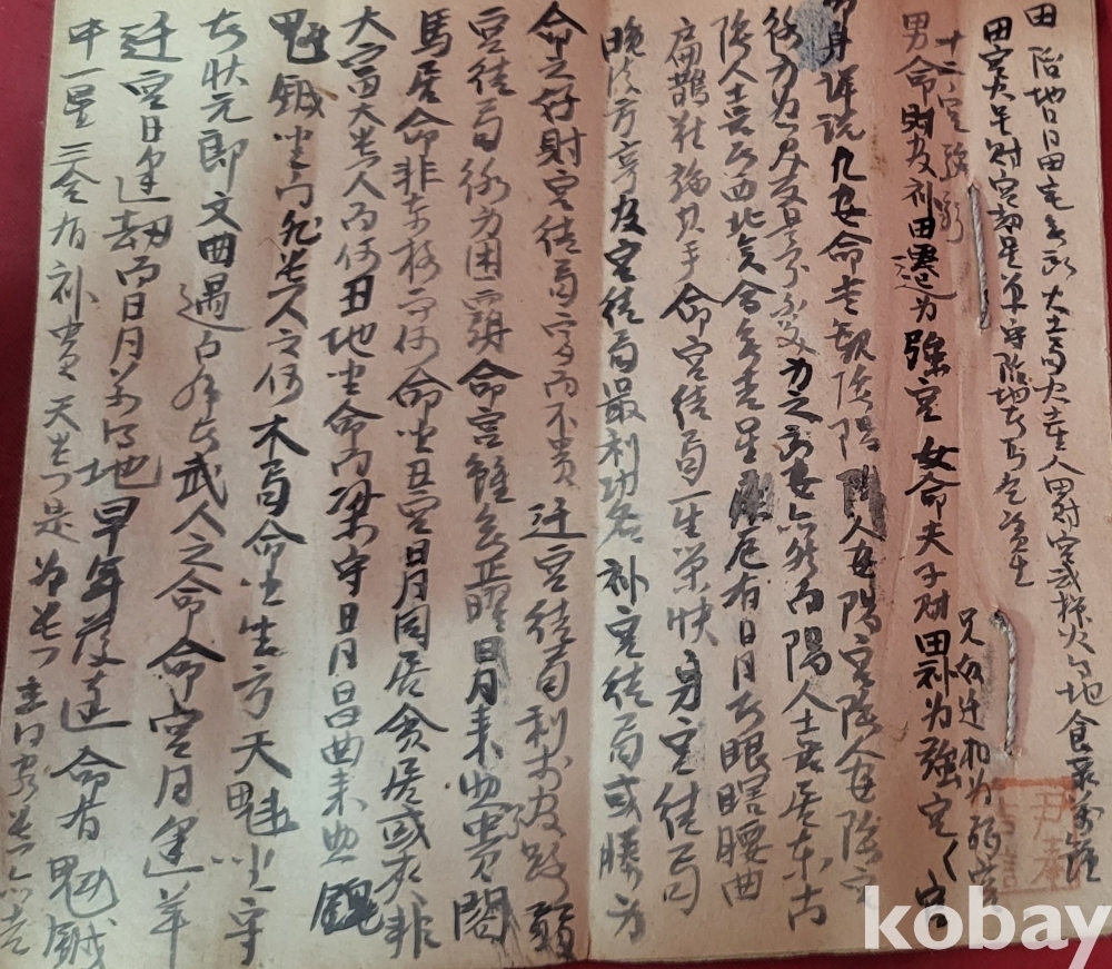얼룩과 구김은 보임니다, 전주에 소장자 가정에서 고화와 함께 나온 서예품입니다,