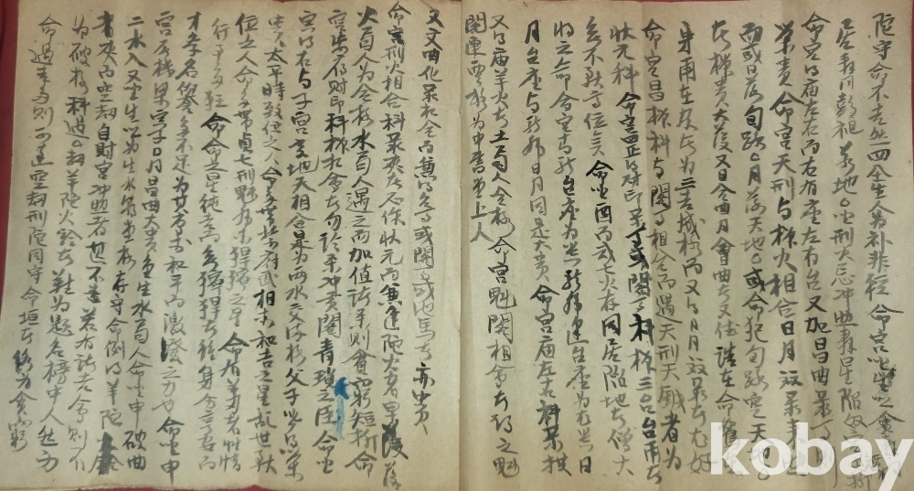 옛날 서예책 처럼 두장씩 묶어서 글을 쓴 상태입니다
