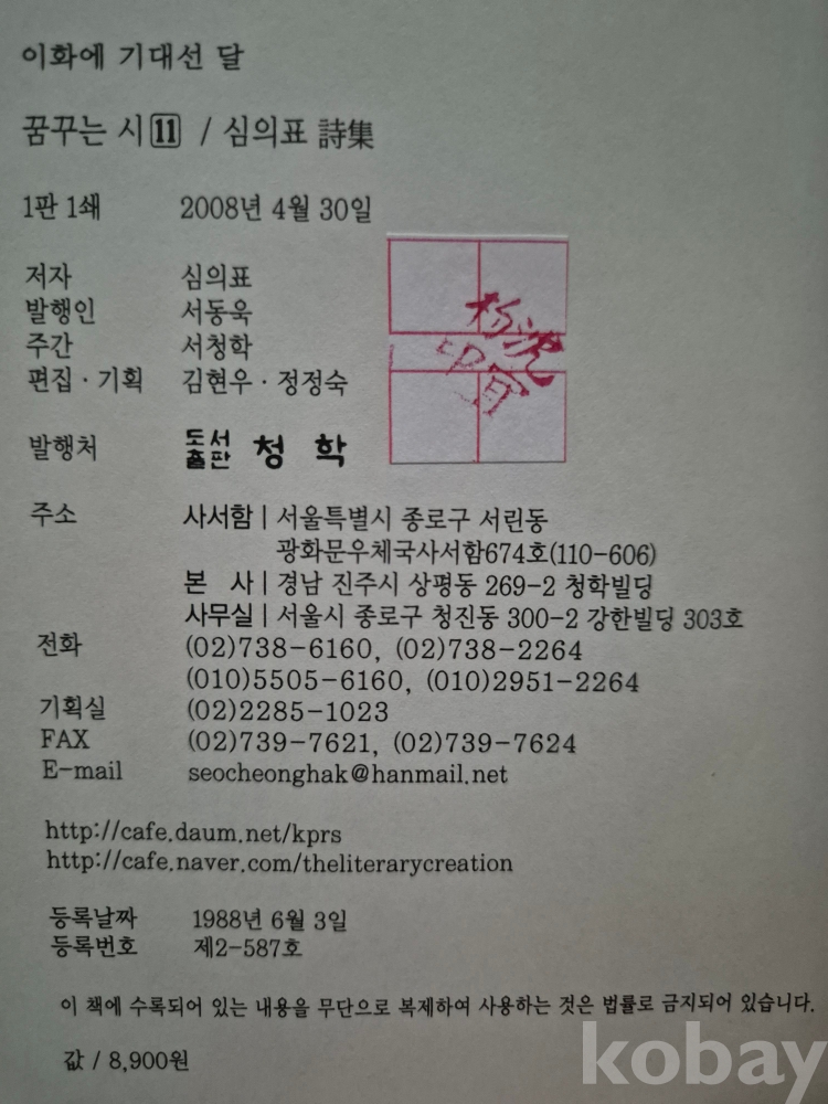 도서출판 「청학」에서 '꿈꾸는 시[11]'로 발행.