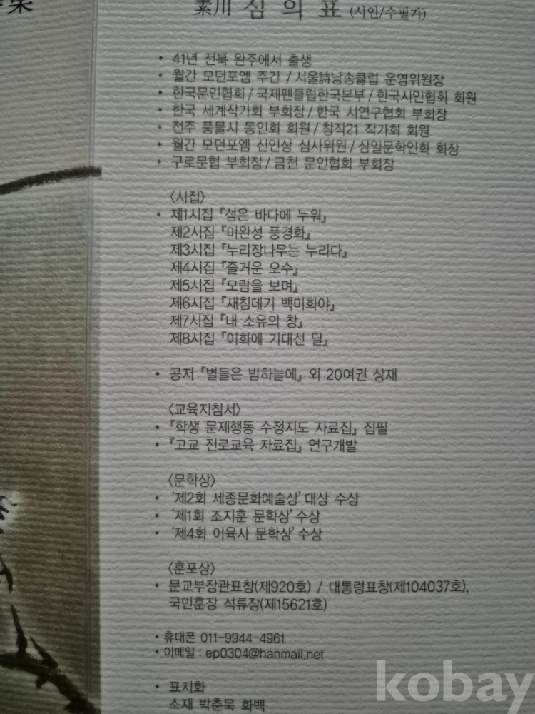 국학대학(고려대학교) 국어국문학과 졸업한 시인 & 수필가(沈宜杓).