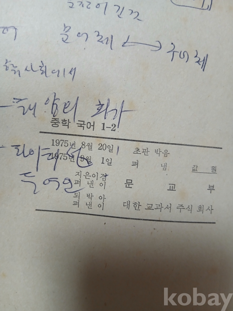 75년 중학교 1학년 국어 교과서
