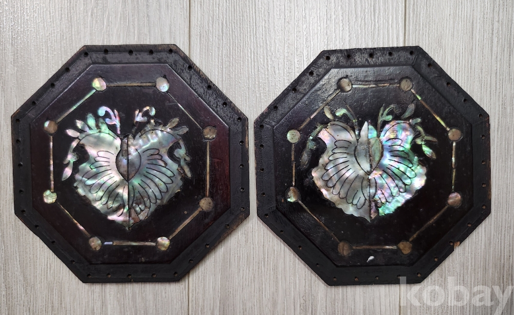 선조들 부자집에서만 사용한 통영자개 (나비문양) 벼개 양쪽 마구리 2점 1셋트입니다 자개 탈락없고 나무판 유없이 상태 매우 양호합니다