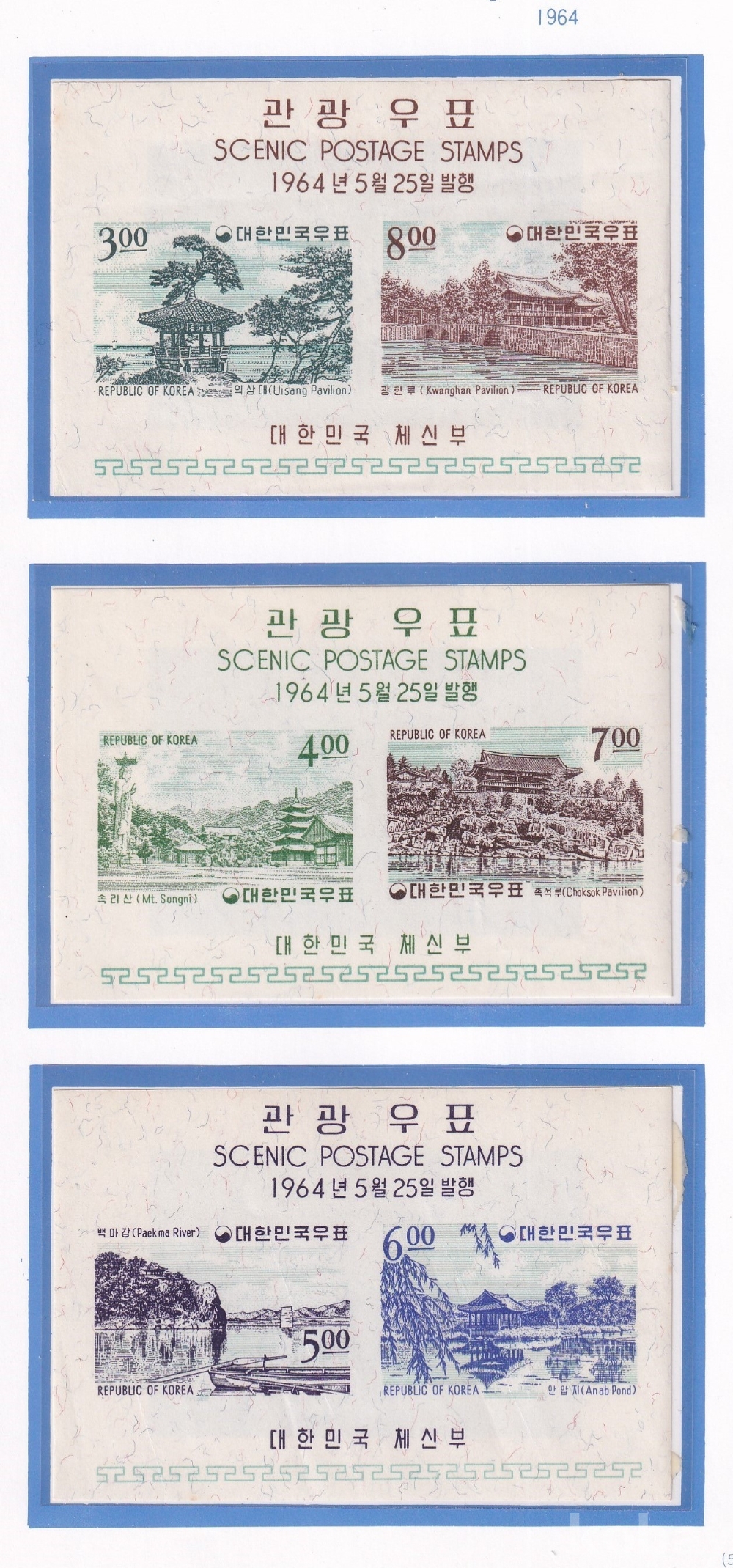 - 한국우표앨범 모음展 - 1964년 한국관광 시리이즈 시트 3종
