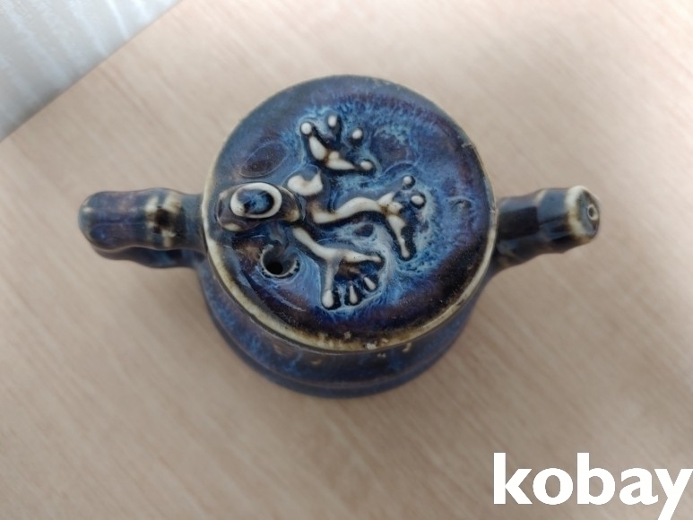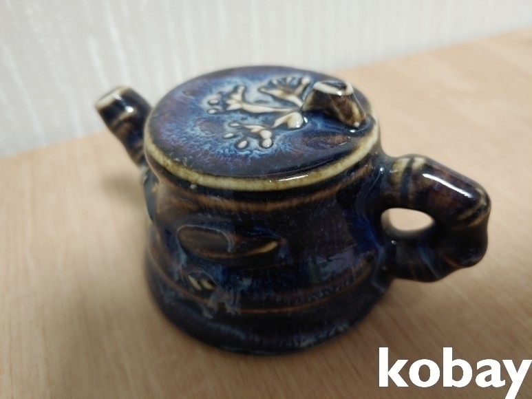 대나무와 개구리 형상의 주전자 연적 도자기 입니다.