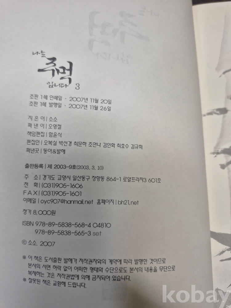 2007년 나는 주먹입니다 3.4.5 소소 신무협 장편소설