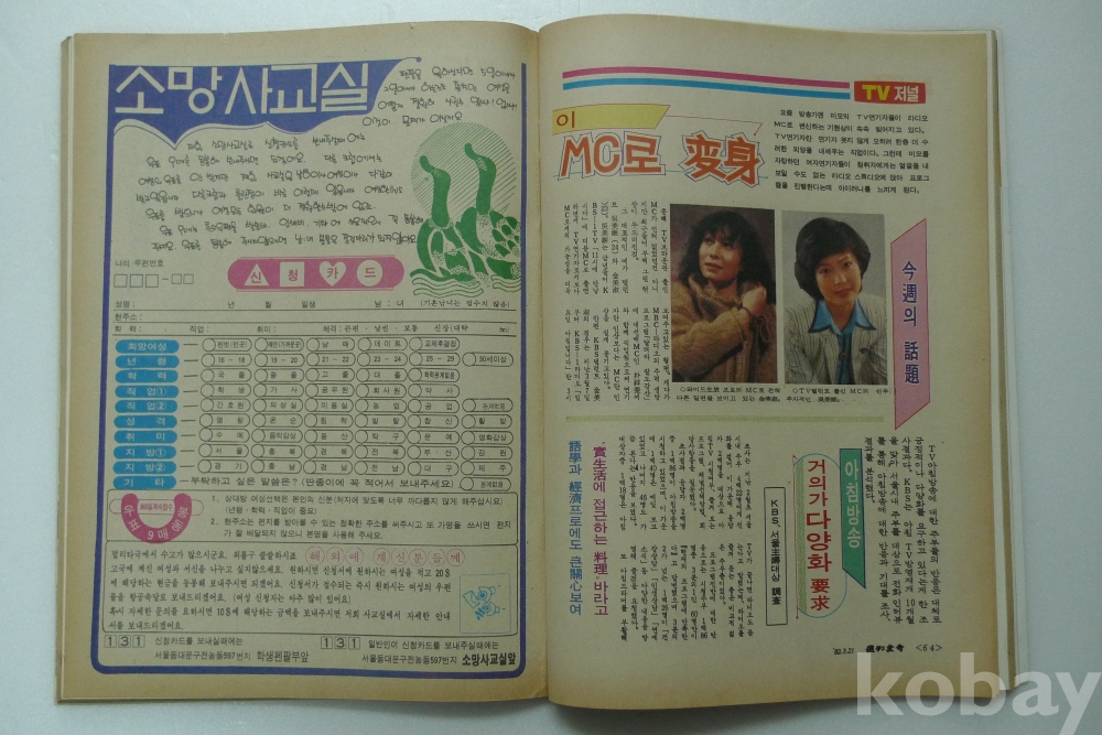 1982년 주간한국 잡지 - 표지모델 탤랜트 김희진 -