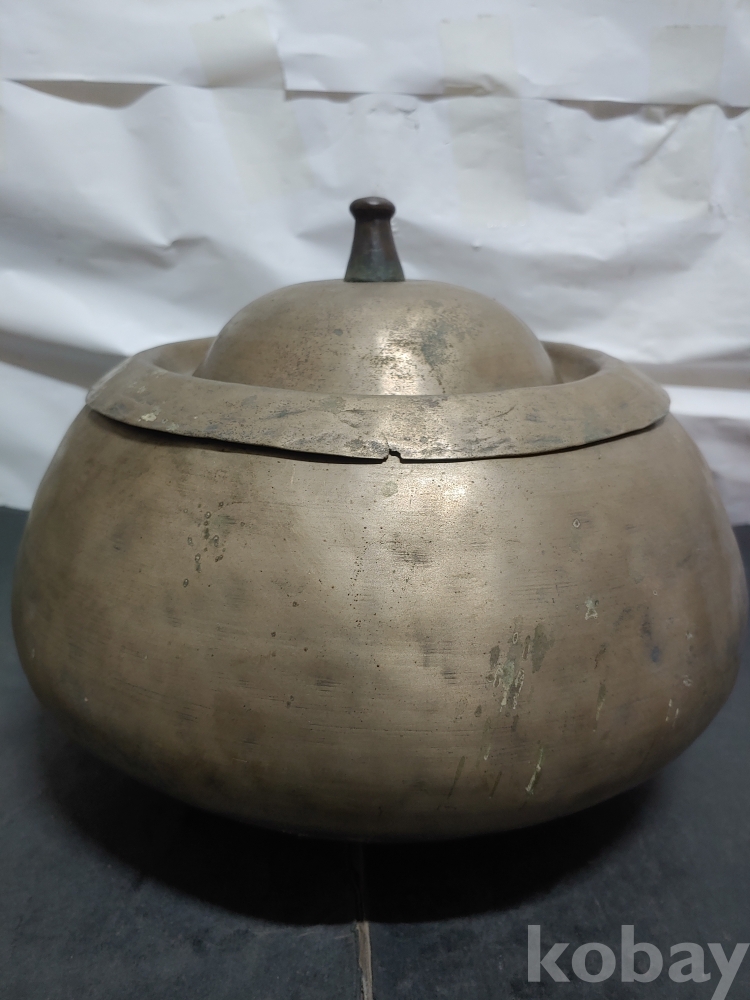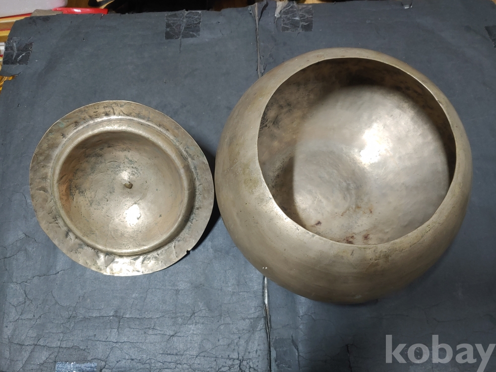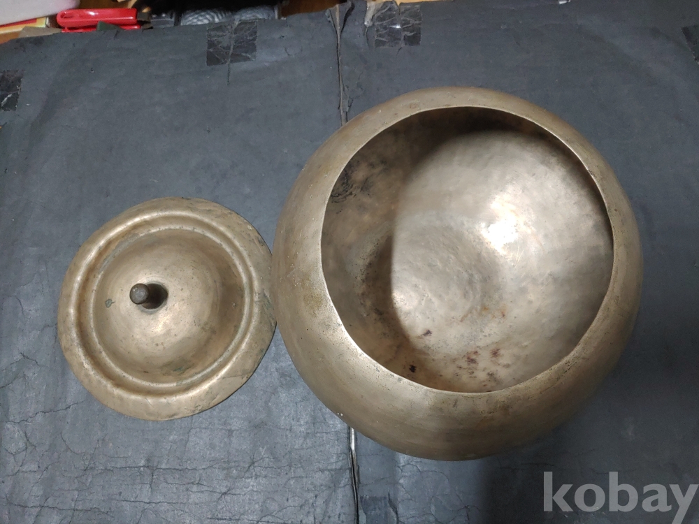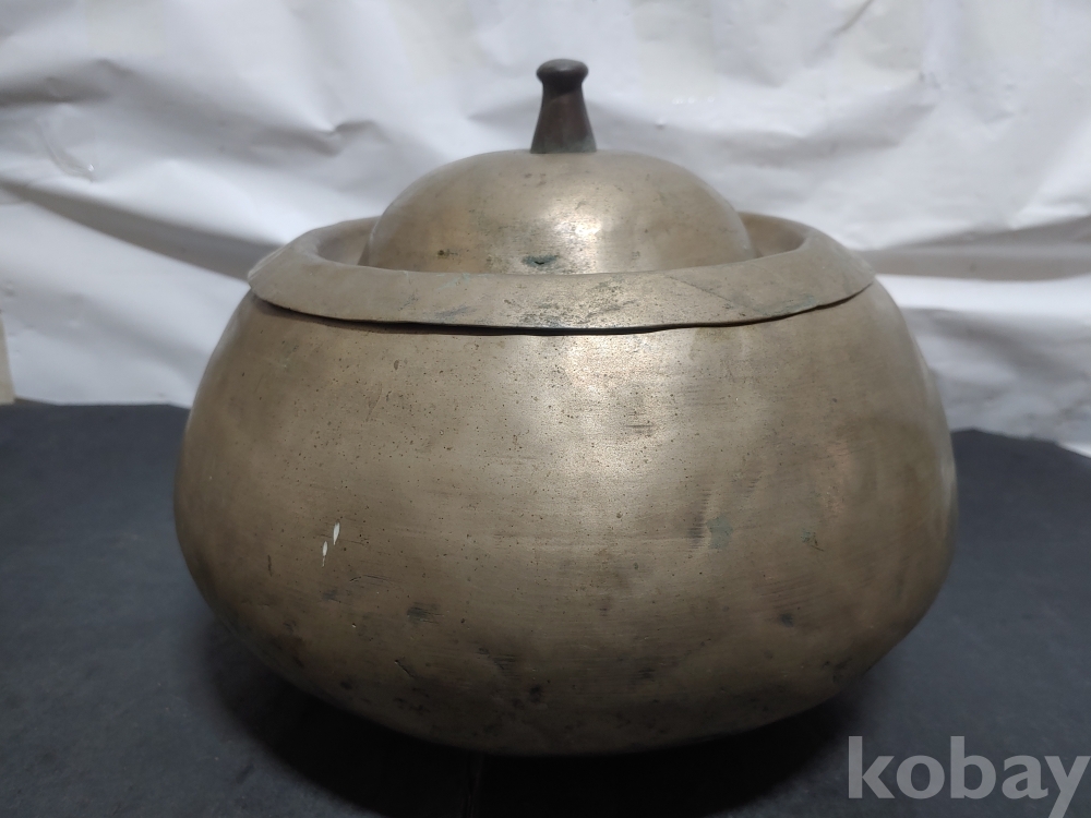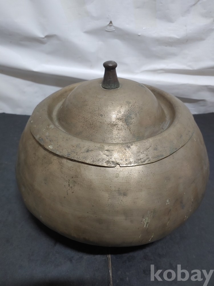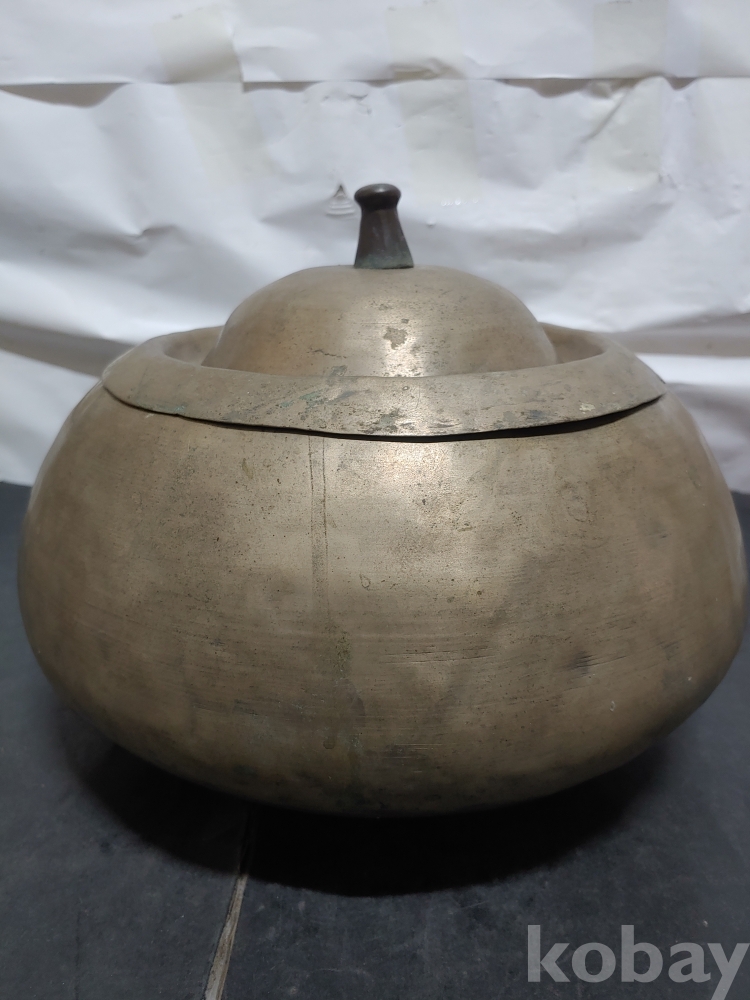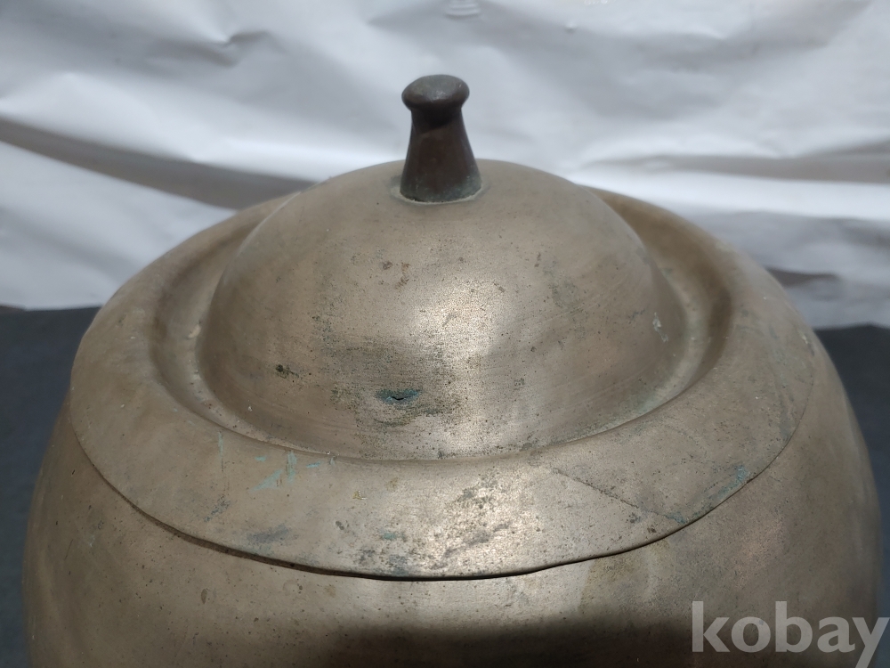 놋요강의 뚜껑은 두툼한 대형 크기이며 테두리에 조금 떨어져 나간 부분이 있으오니 참고로 하여 주세요