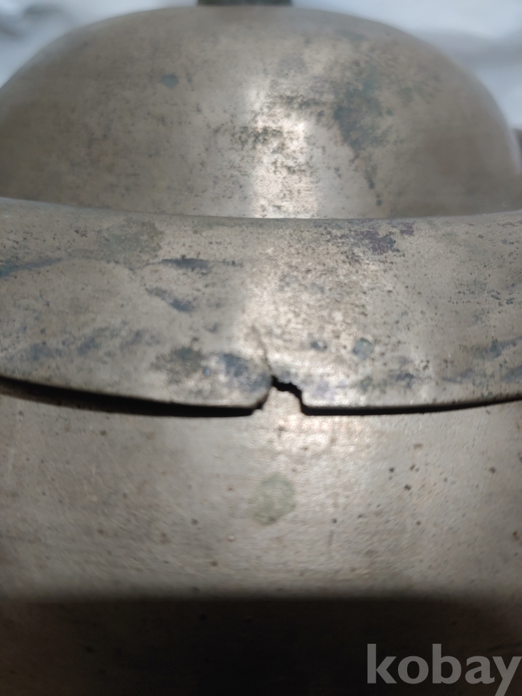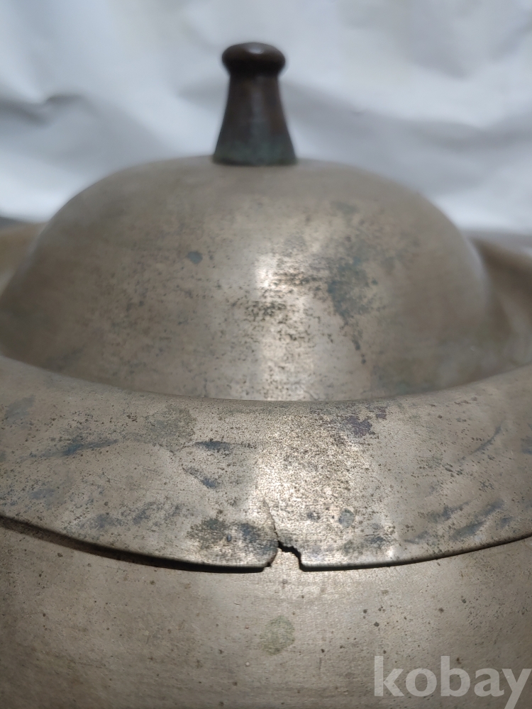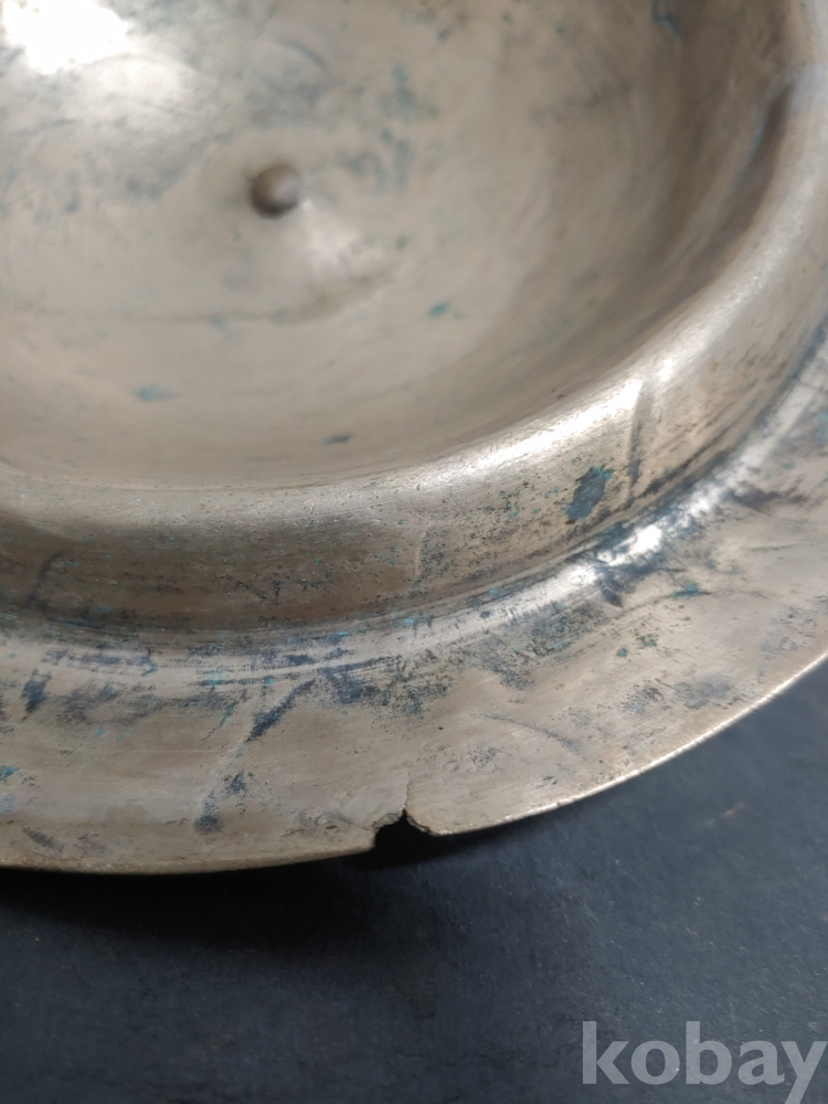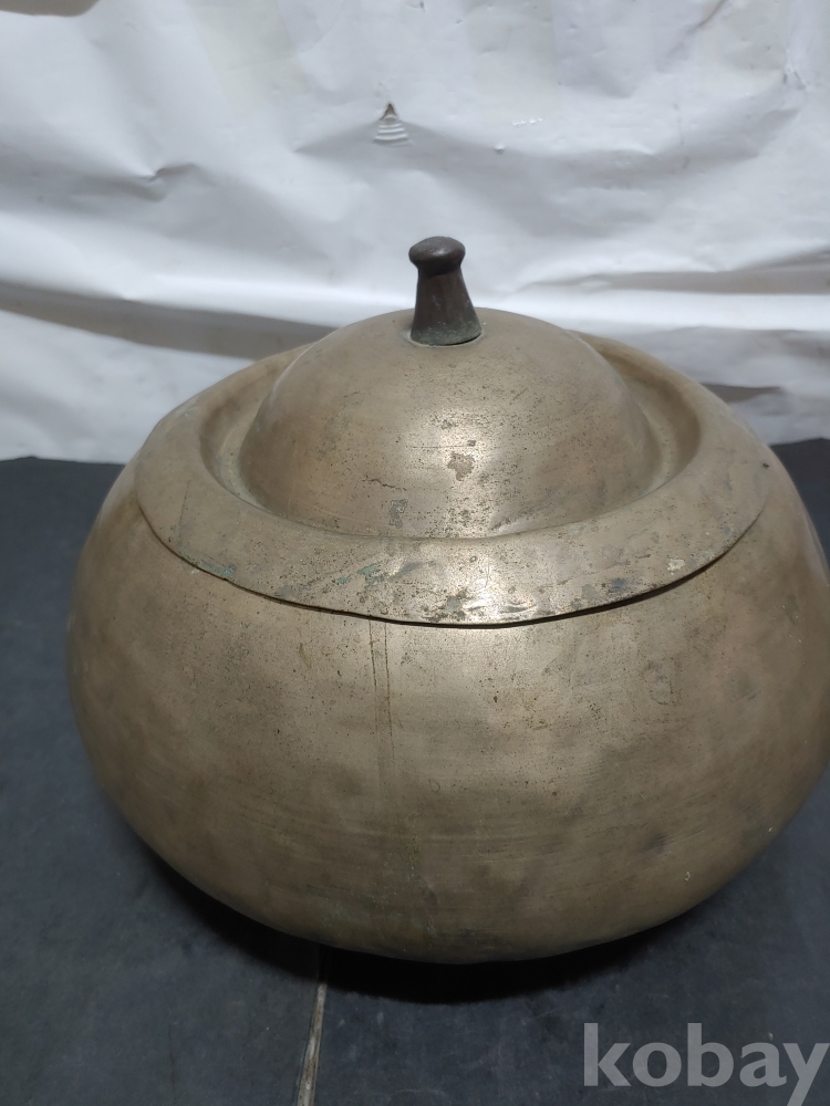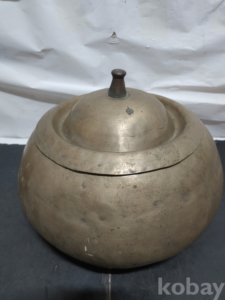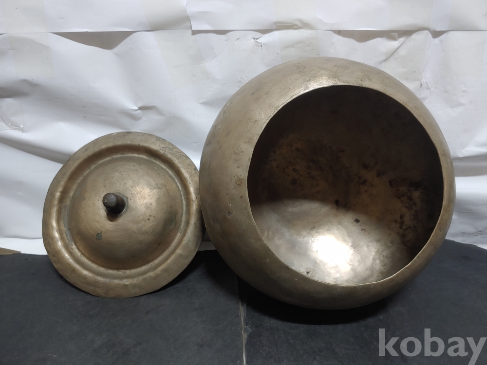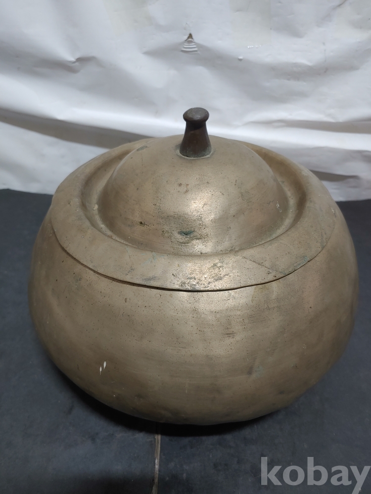 놋요강의 뚜껑은 두툼한 대형 크기이며 테두리에 조금 떨어져 나간 부분이 있으오니 참고로 하여 주세요
