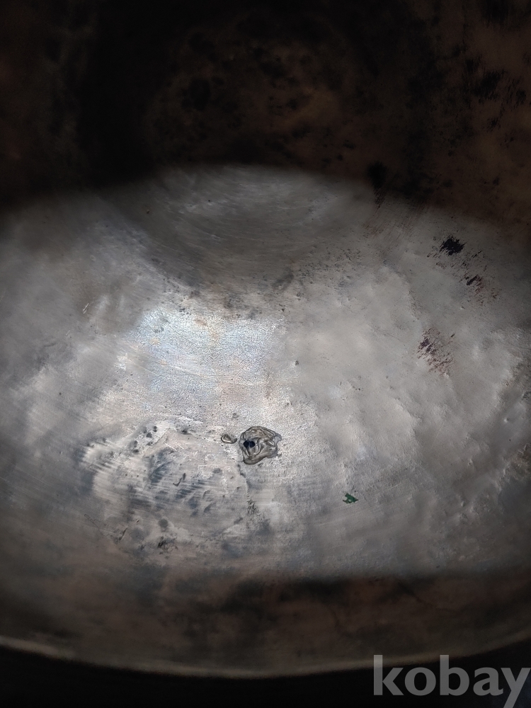 작은 구멍이 놋요강의 중간 하단에 있어서 정면에서 보시면 보이지 않는 부분에 있어요