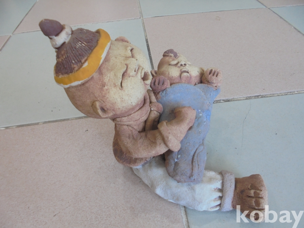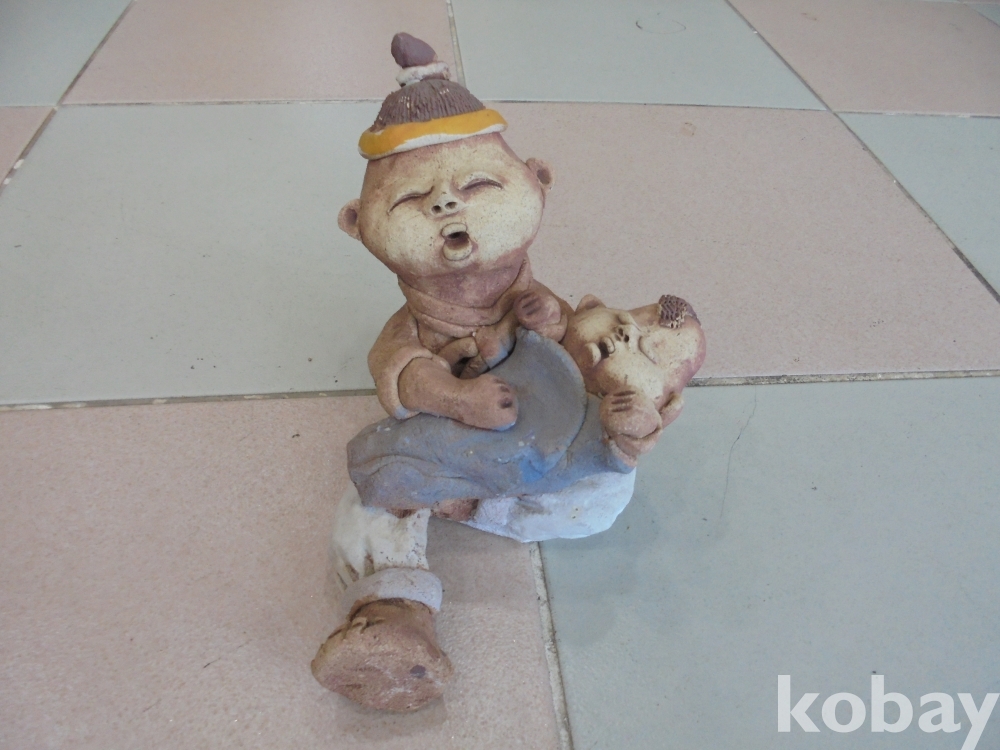 옛어디에서 유명하여 많이본듯한 해학적이고 예술적인 생각이 많이가게하는 초벌구이한 도자기 인형
