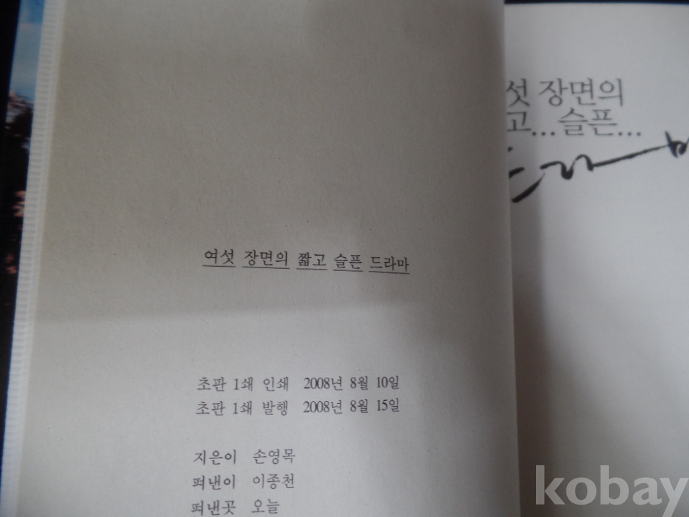 손영목 소설작품집,,,여섯장면의 짧고 슬픈 드라마,,,저자싸인증정본 ,,2008년초판1쇄,,,