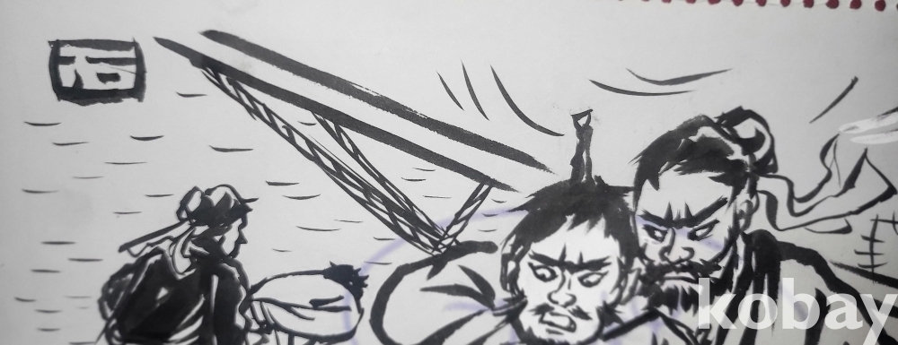 물과 먹으로 만 직접 그려진 수묵화 삽화입니다,