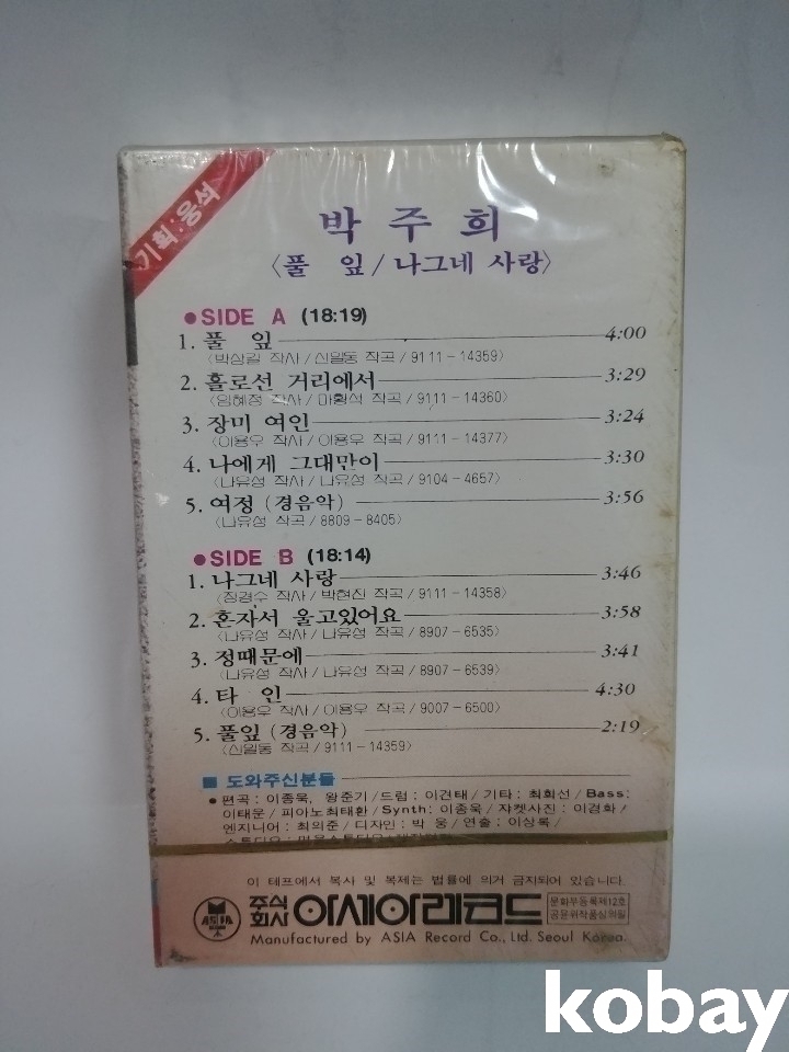 추억의박주희 가요 카세트 테이프 미개봉