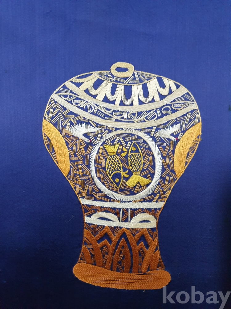 {천원경매}11- 0571 자수 그림(2) (브라운, 32*63, 말아서 배송됨)