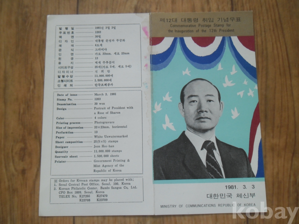 1981년 제12대 대통령취임기념 우표설명서