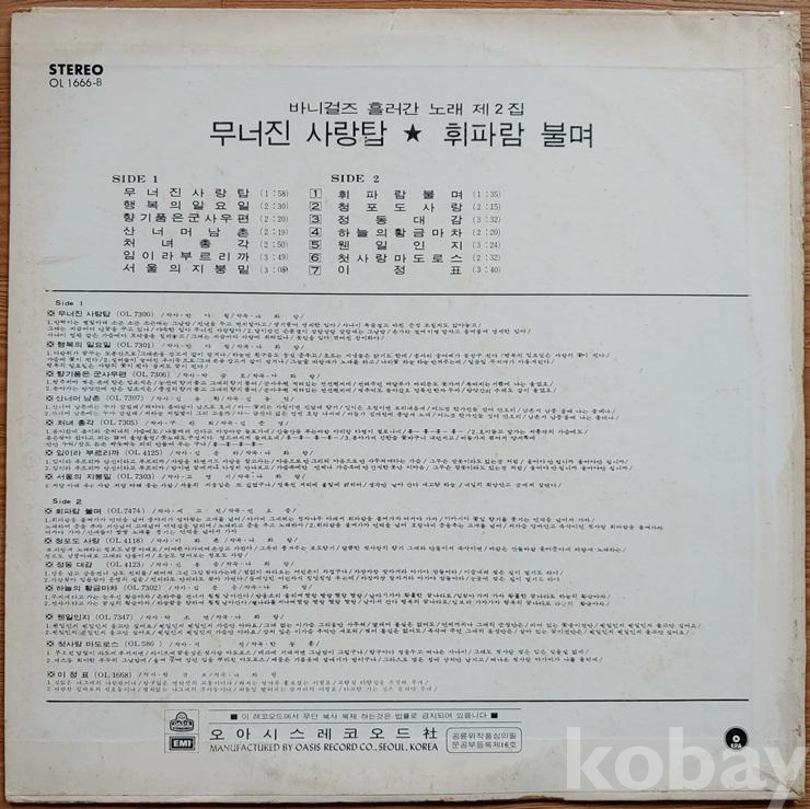 | 자켓상태 | EX : 약간의 마모, 모서리 찢김 존재 | 음반상태 | NM : 개봉했으나 미사용급, 스크래치 없음 | 발매정보 | 초반 | 가사지여부 | 유 |