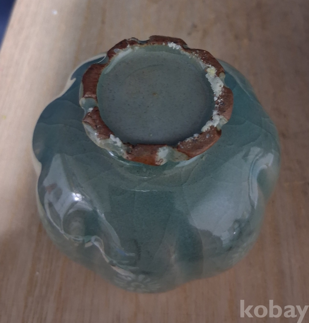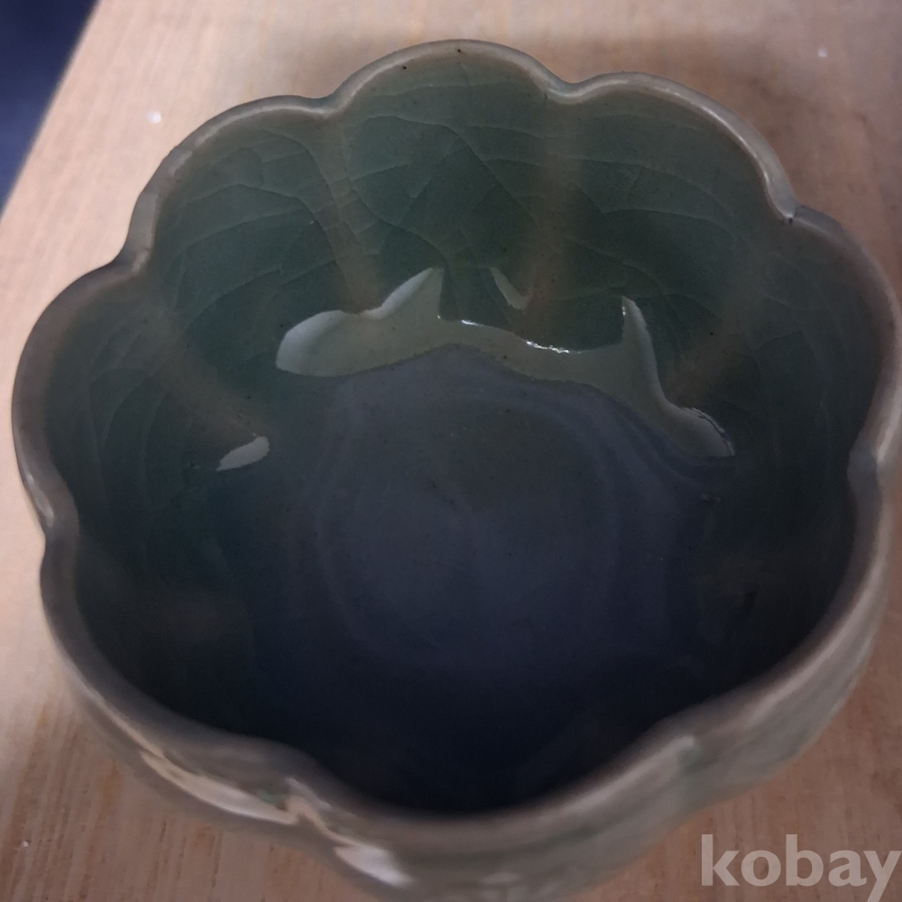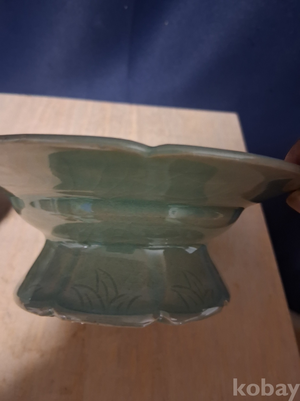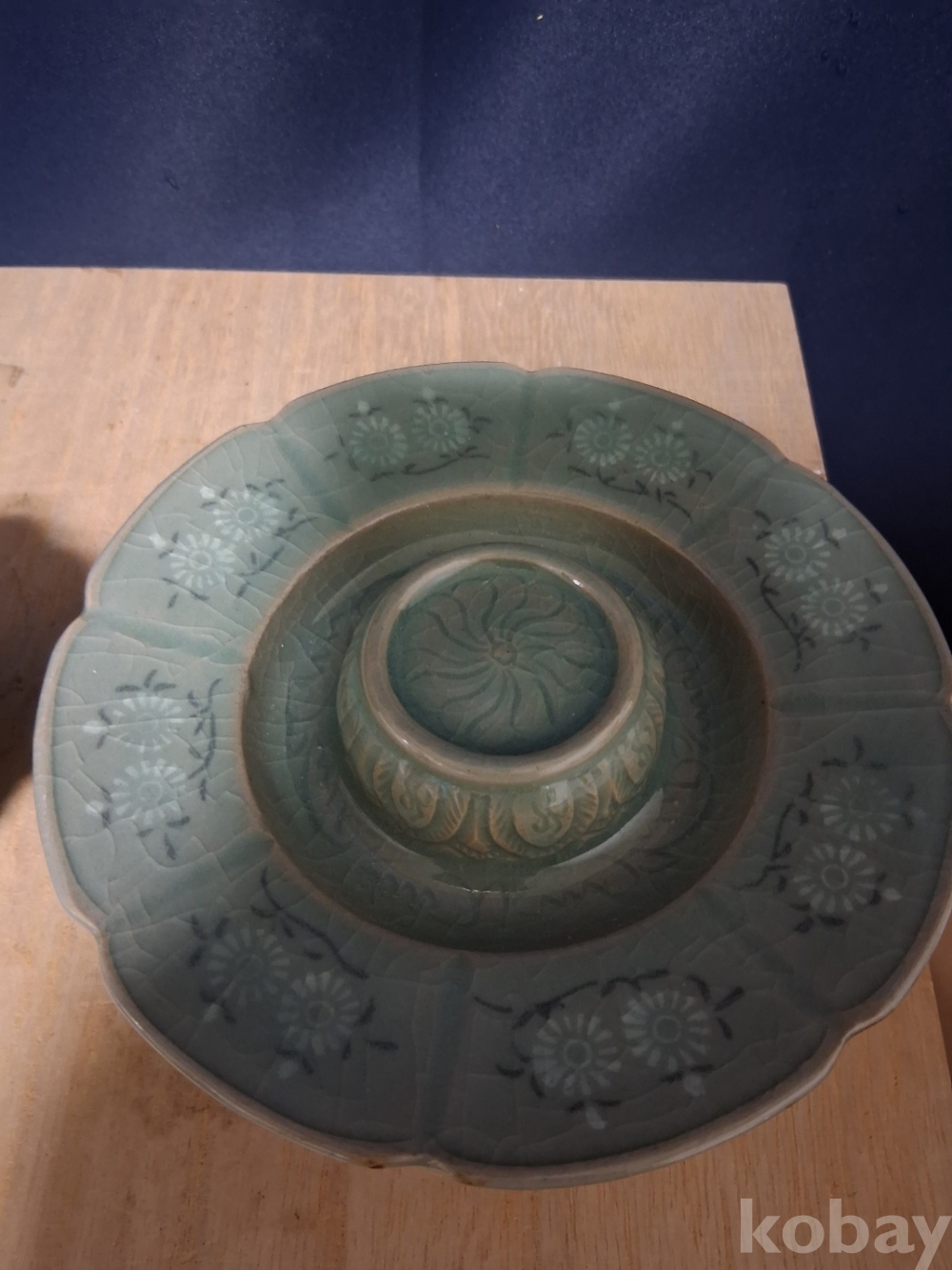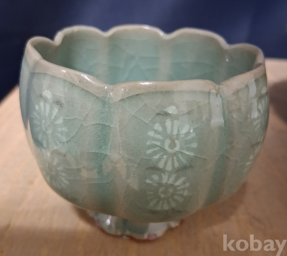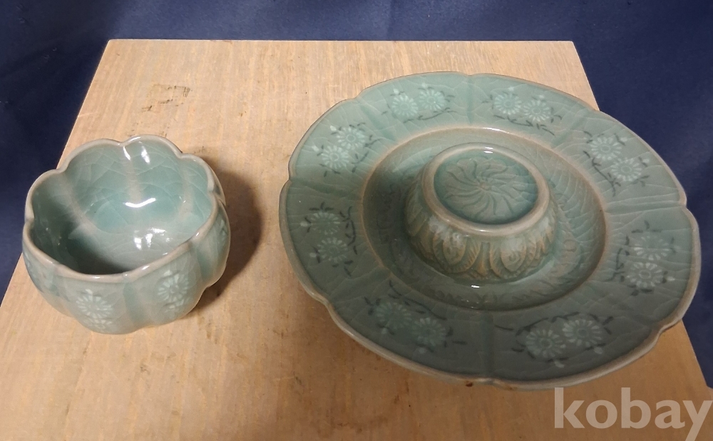 전체적으로 빙열이 아주 잘들어간 청자 잔,잔대입니다.