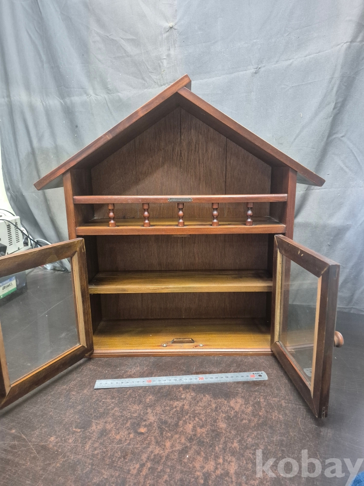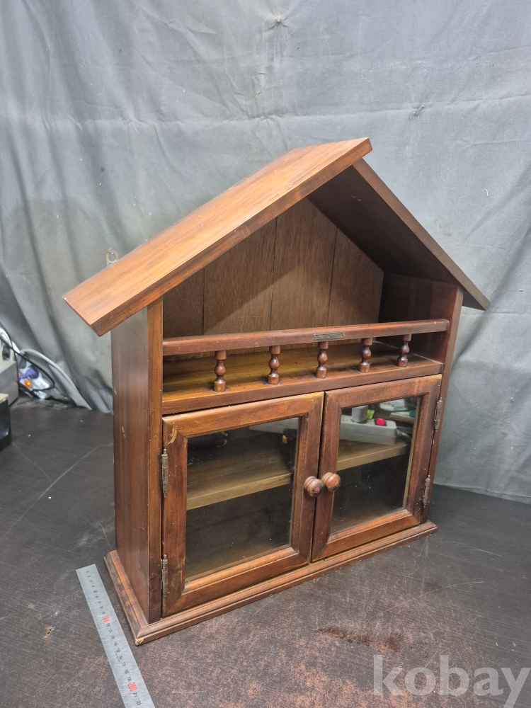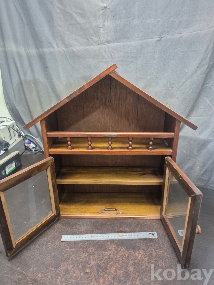 1970-80년 유행하던 원목으로 만든 소형 소품 장식장 재질 원목에 유리 48*16*56