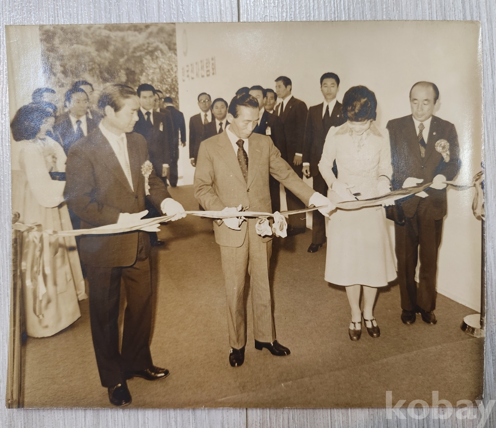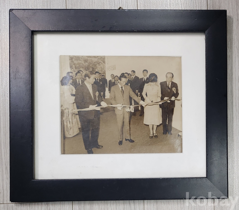 1975년 10월 10월10일 한국전자 전람회 개소식에 전대통령 박정희 박근혜 실사진 입니다 액자포함 입니다 ㅡ