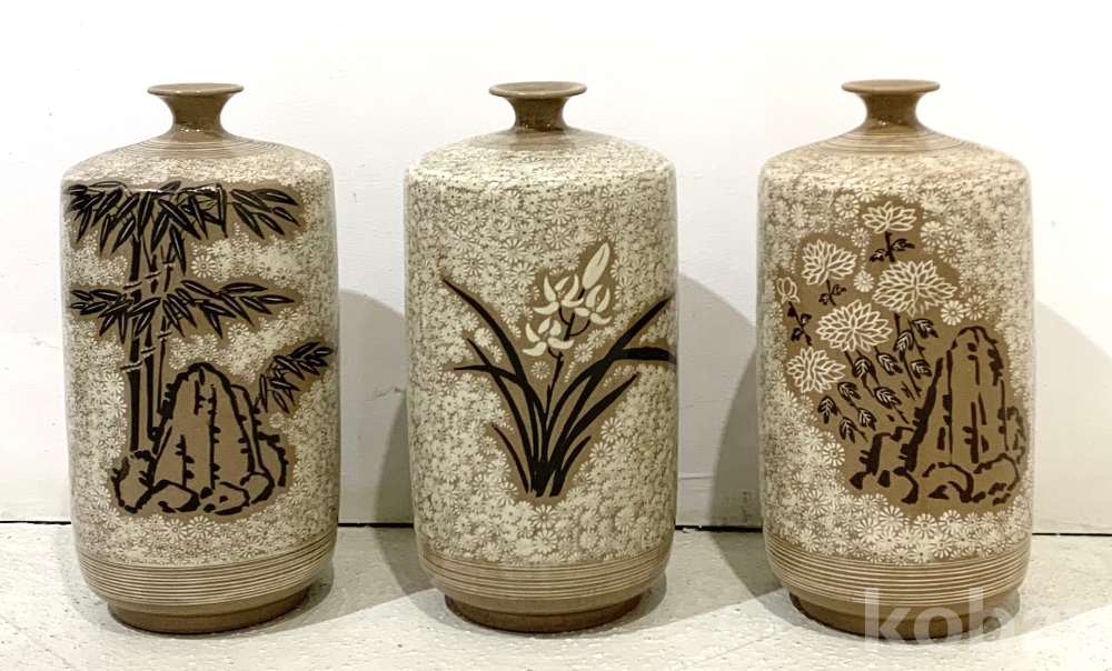 유명도예가 청파이은구 선생의 분청도자기 매.난.죽 3점입니다