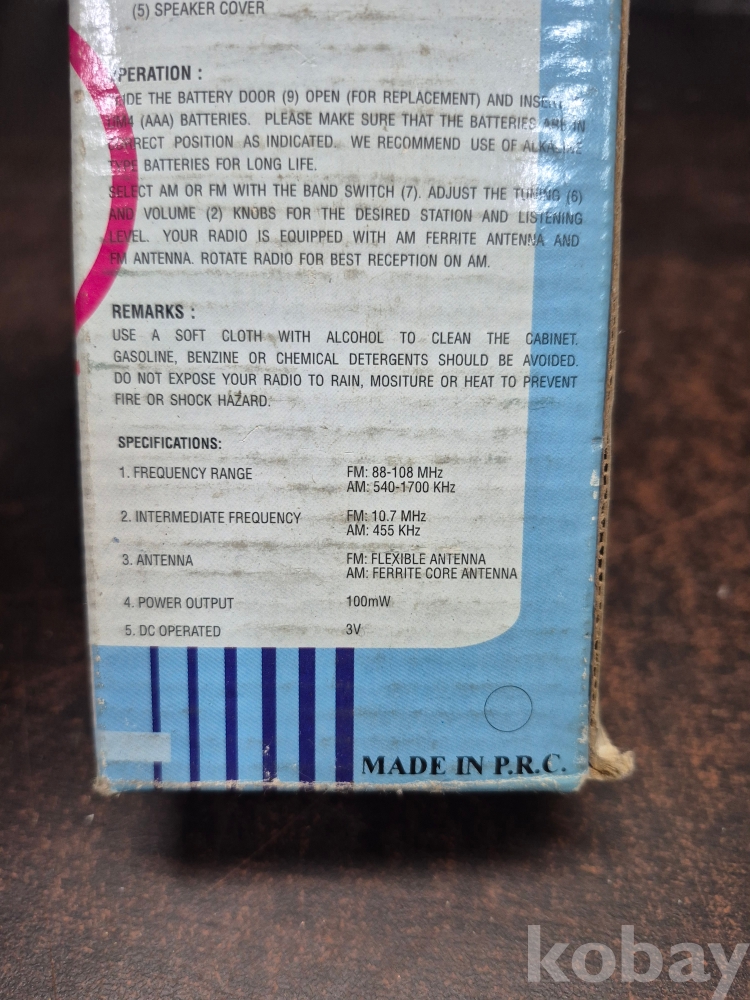 1990년 생산품 미니 AM/FM라디오 정상작동 메이드 인 프랑스 미사용 미개봉 박스품 6*4*15