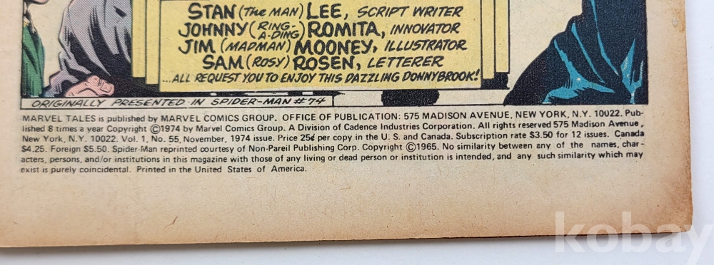 물 품 명 | MARVEL TALES / Vol.1 #55 Nov. 1974 / MARVEL COMICS GROUP / 미국 |