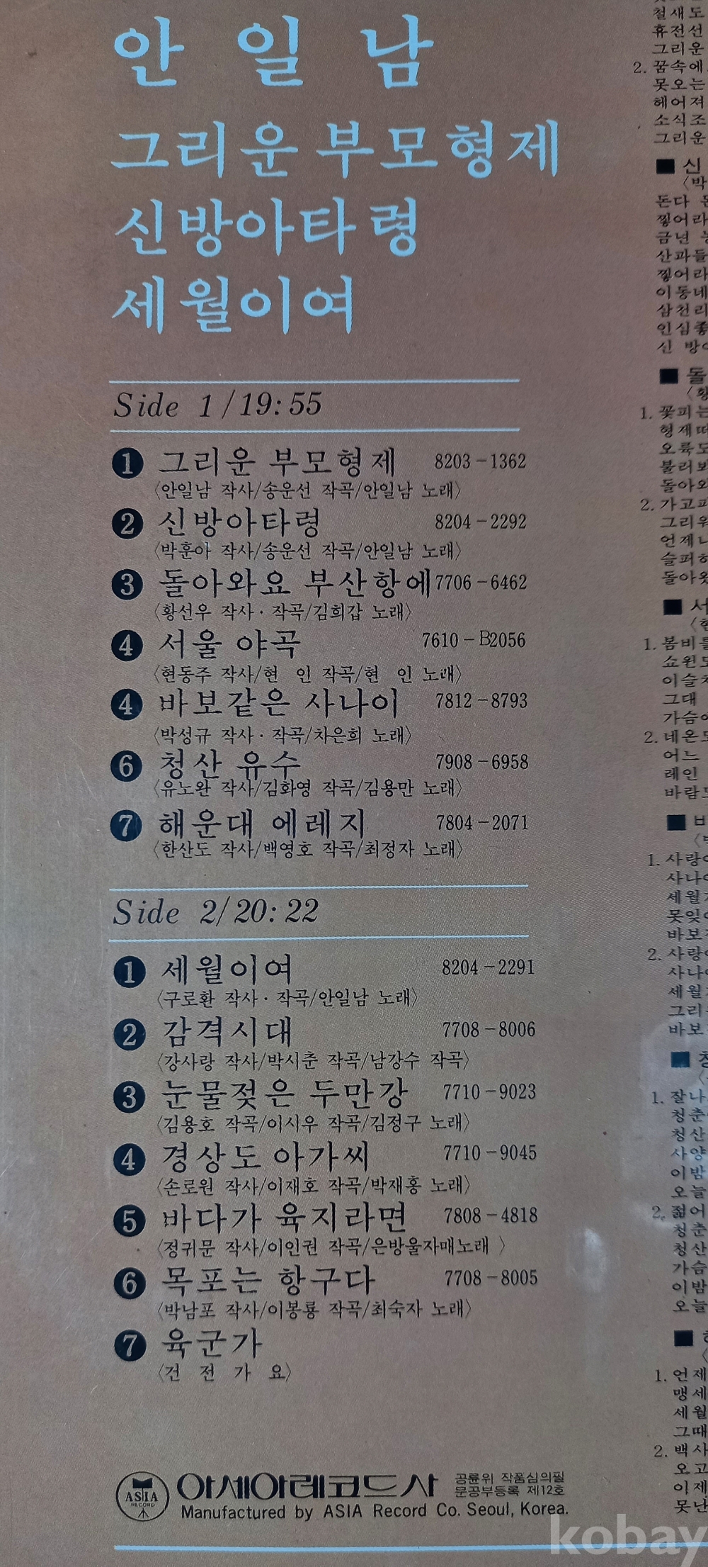 | 제조국 | 한국 | 발매연도 | 1982 |