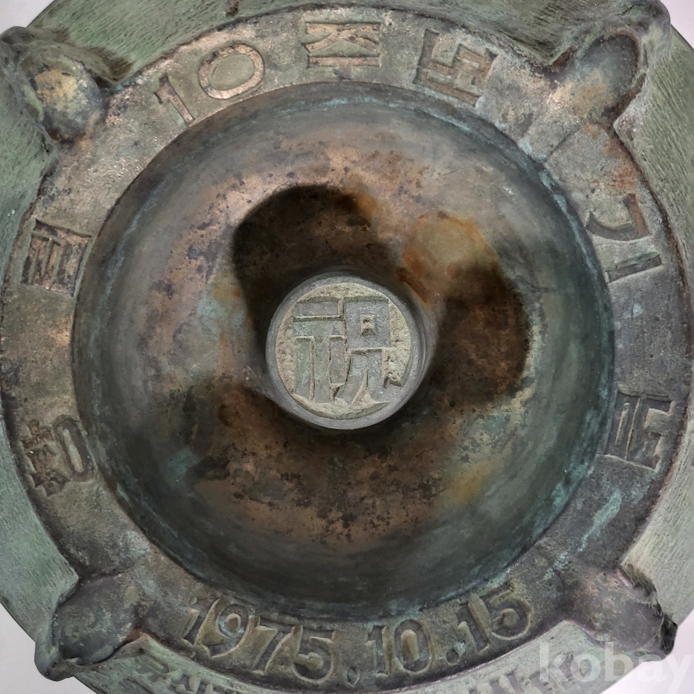 70년대 동으로된 유신실업/유신기계공업주식회사 대형 삼발이 재떨이 이며