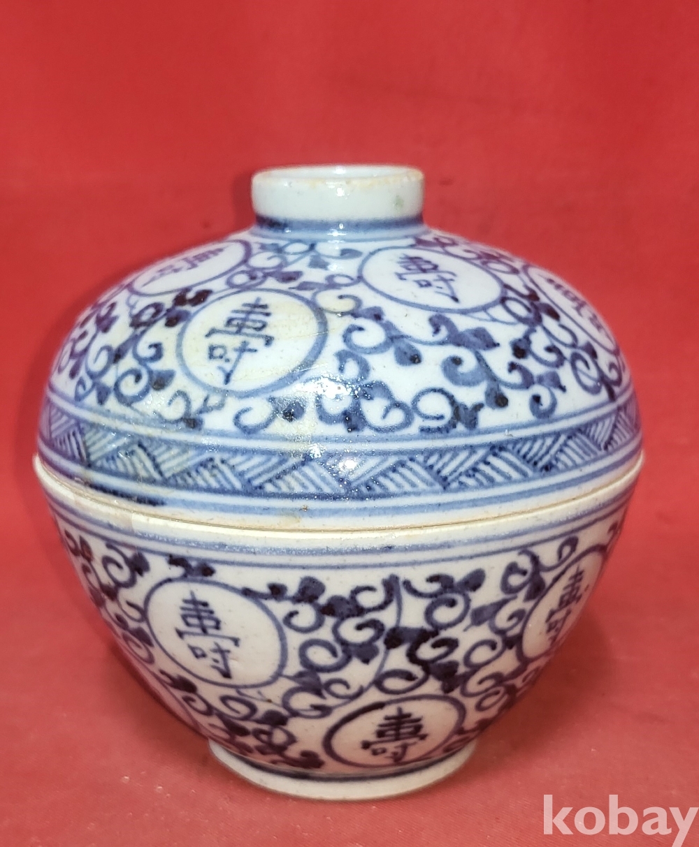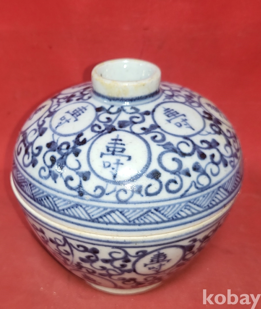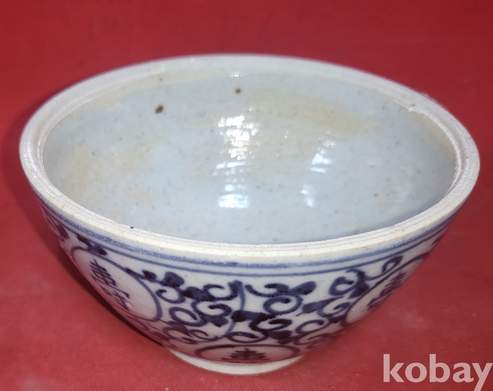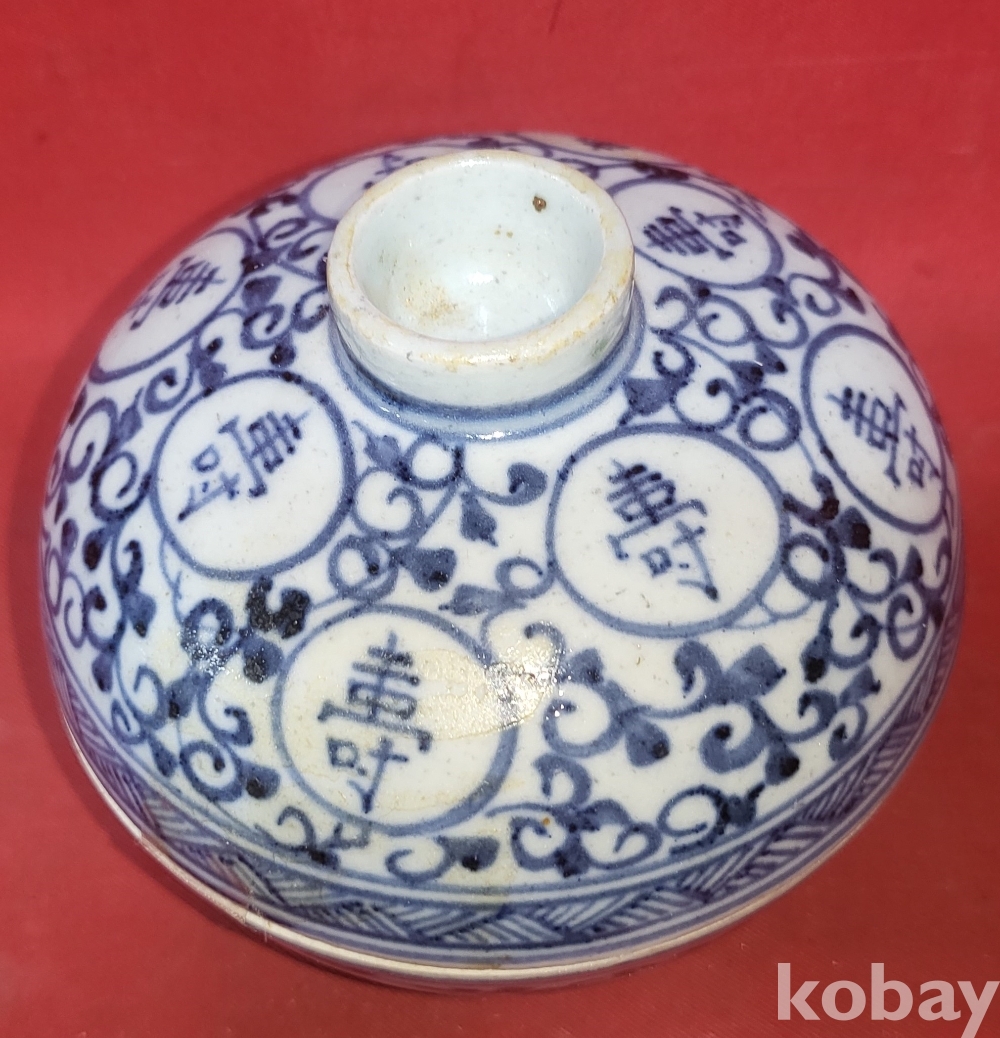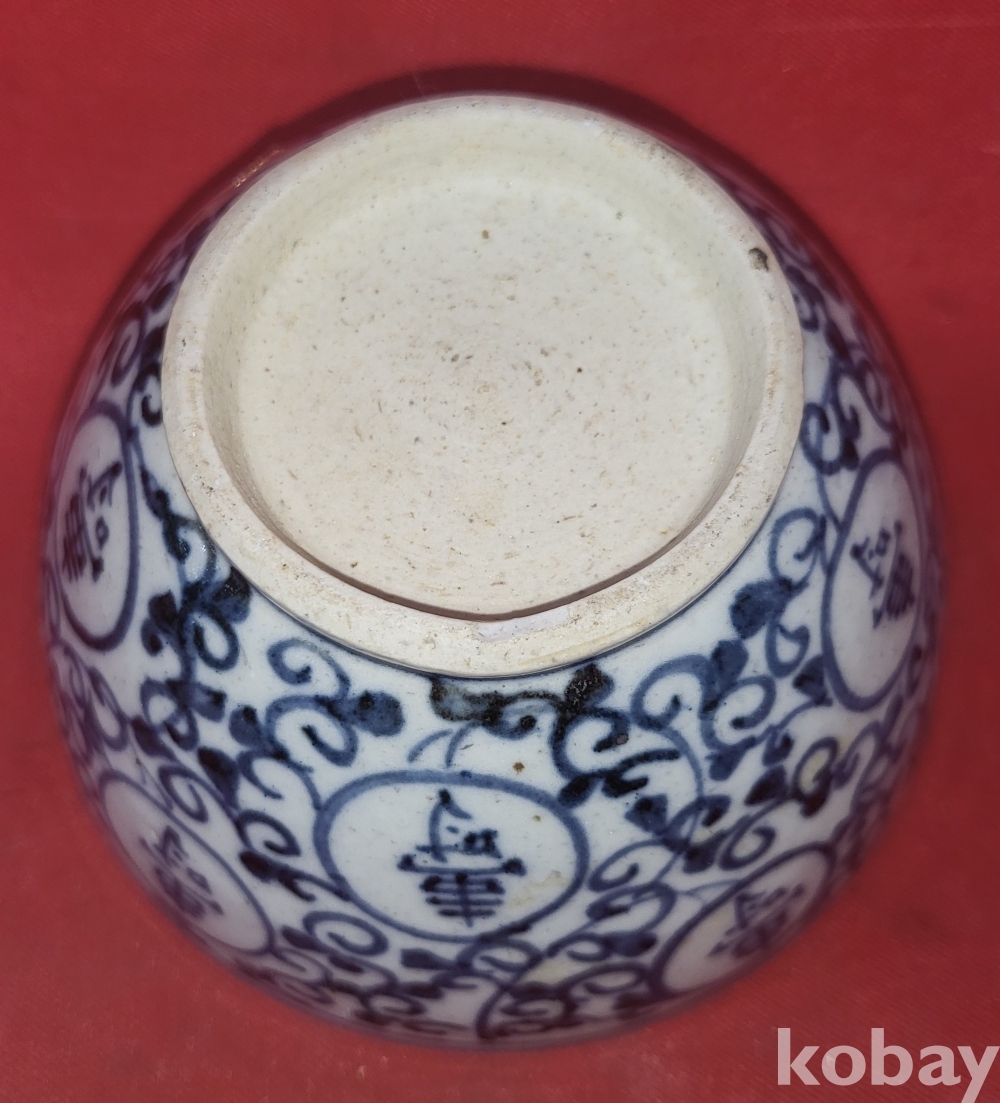 청화백자 중국 지도 지명(地名) 고족(高足) 완(碗)입니다,