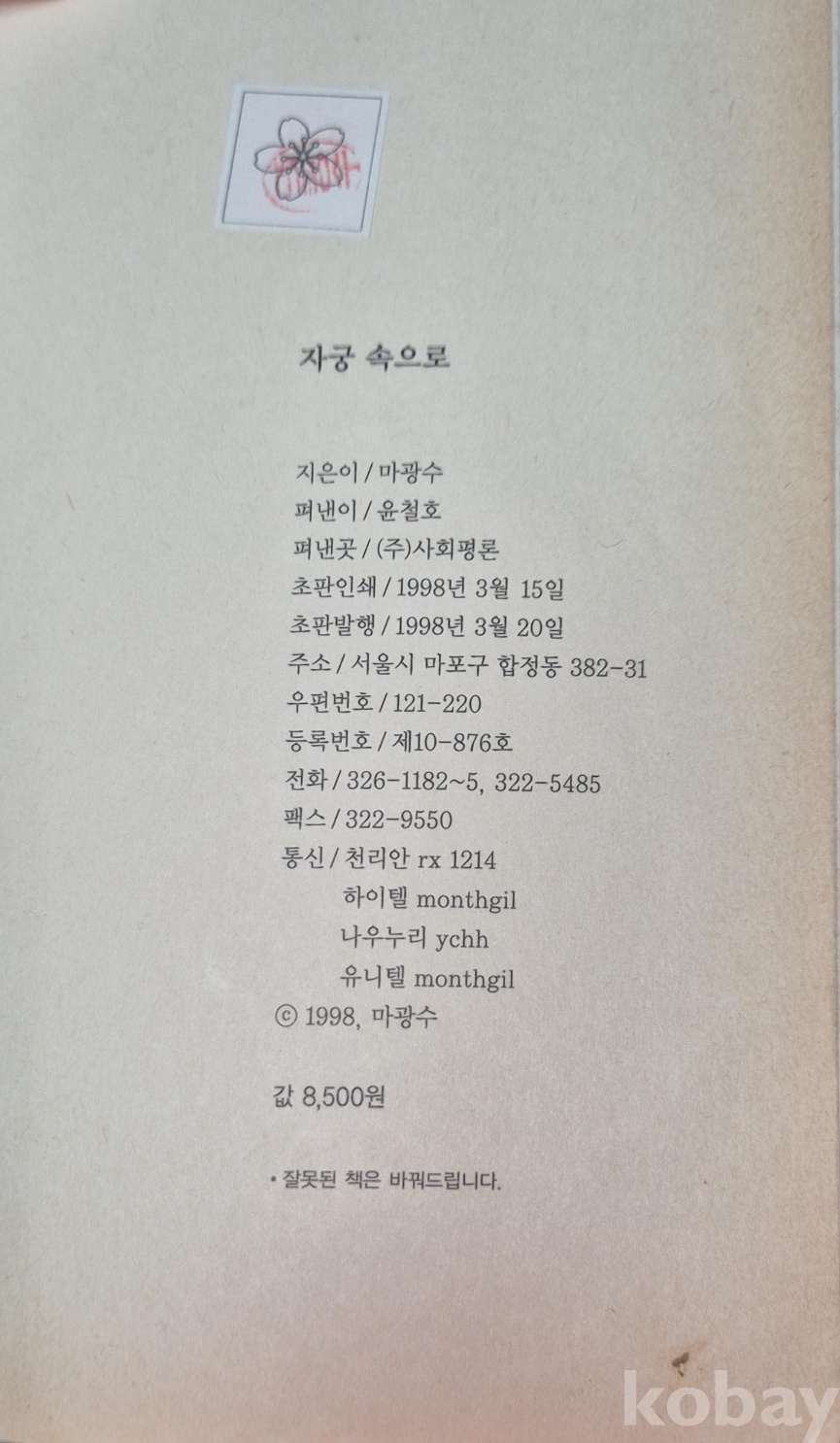 1998년 발행된 마광수 장편소설 '자궁 속으로' 초판입니다.