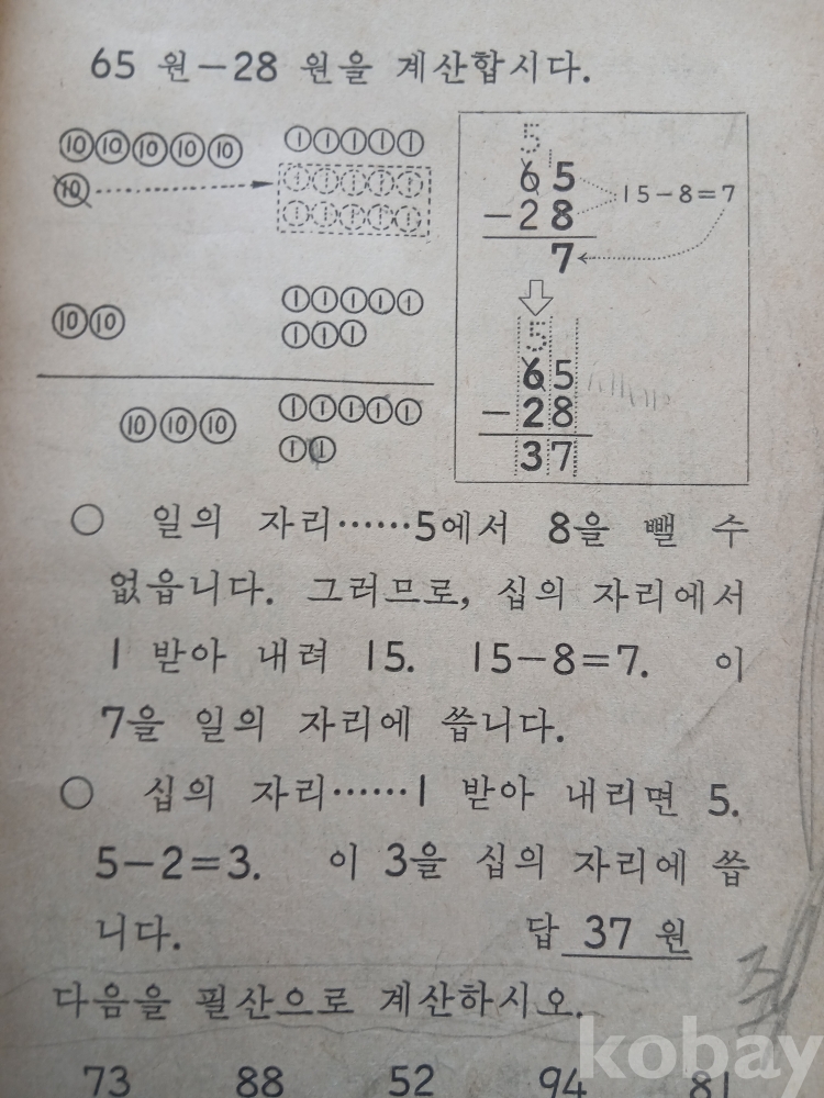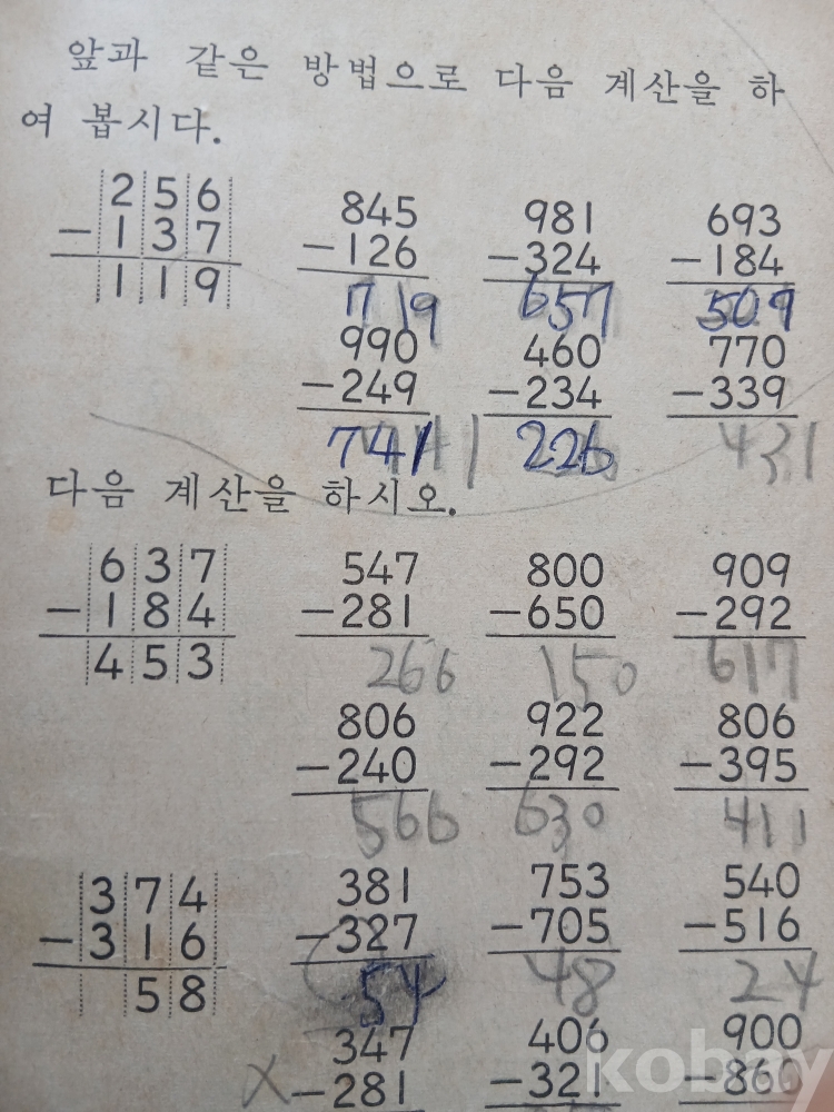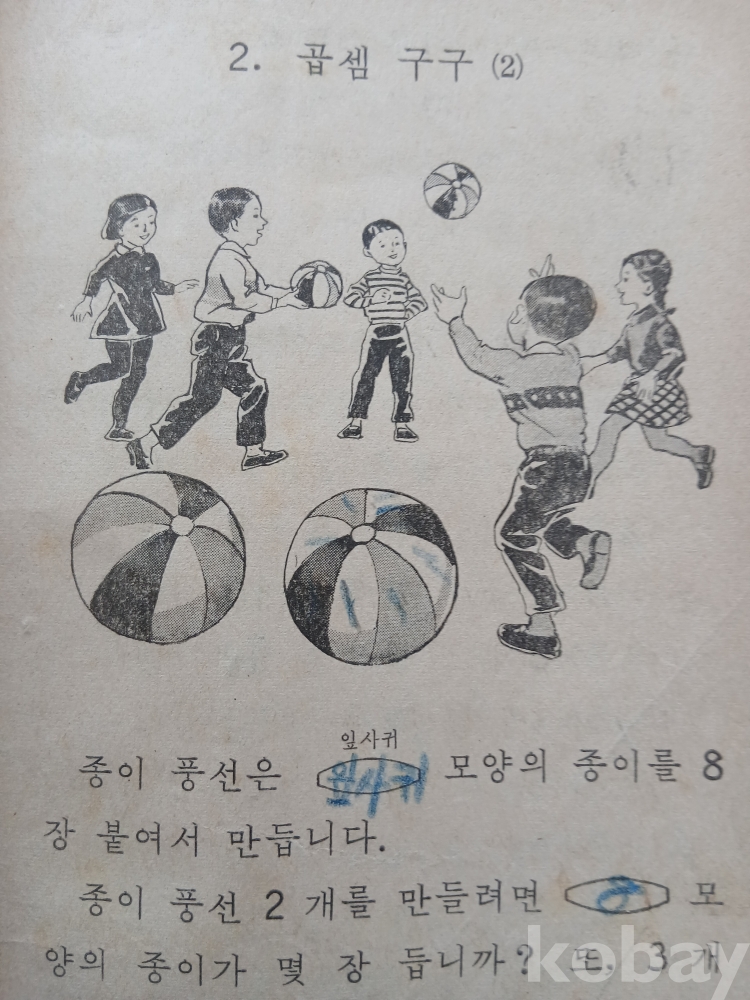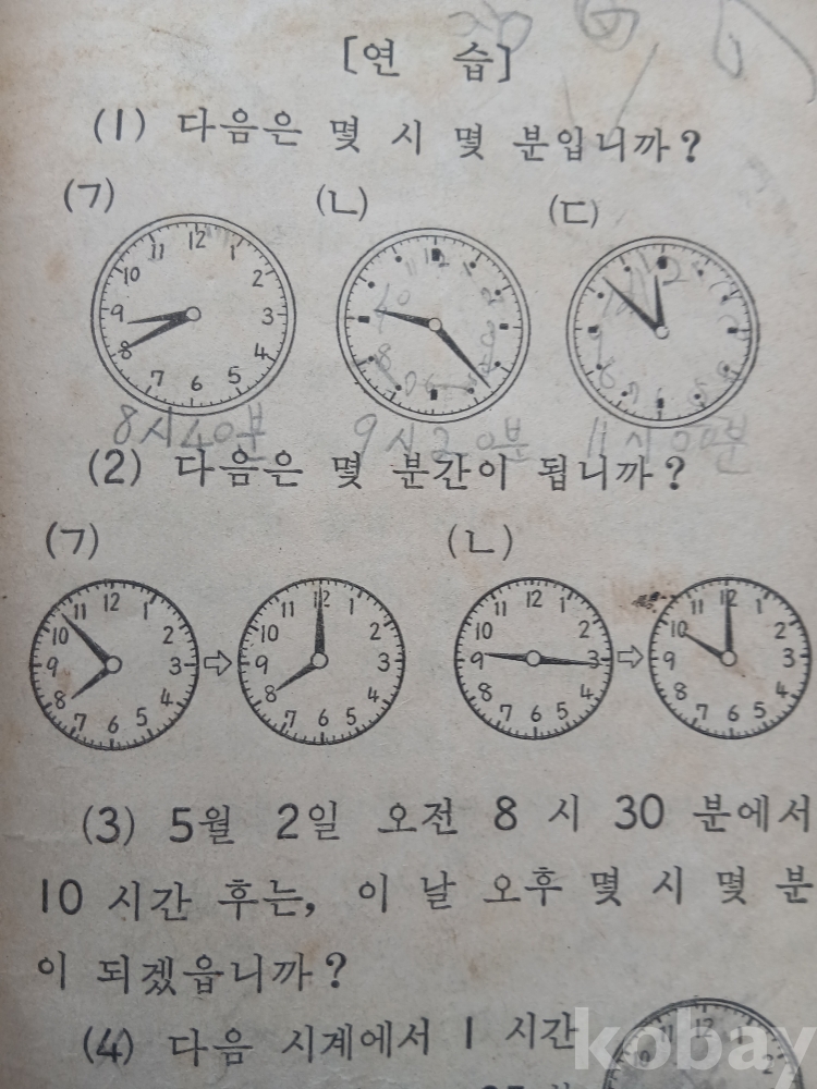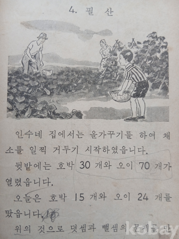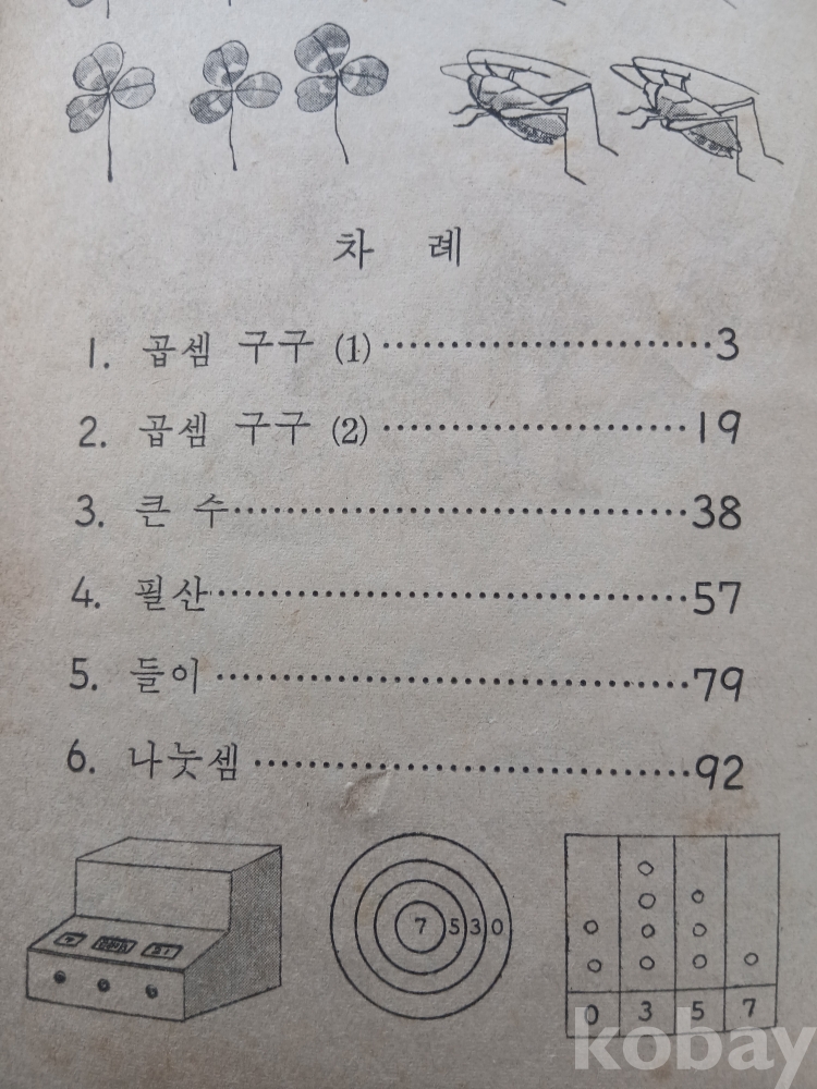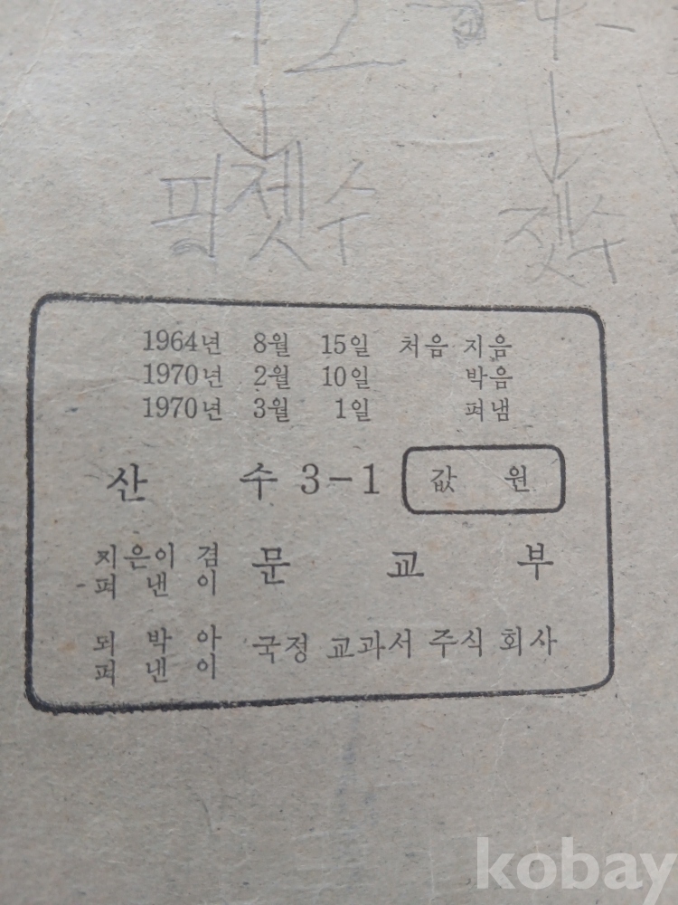 국민학교 교과서----산수 3학년 1학기 (1964년 처음 지음 1970년 발행)----앞 뒤표지 많이 낡았으며 특히 앞표지 우측 상단부 일부 손실 있으며 공부란 흔적 일부 있음