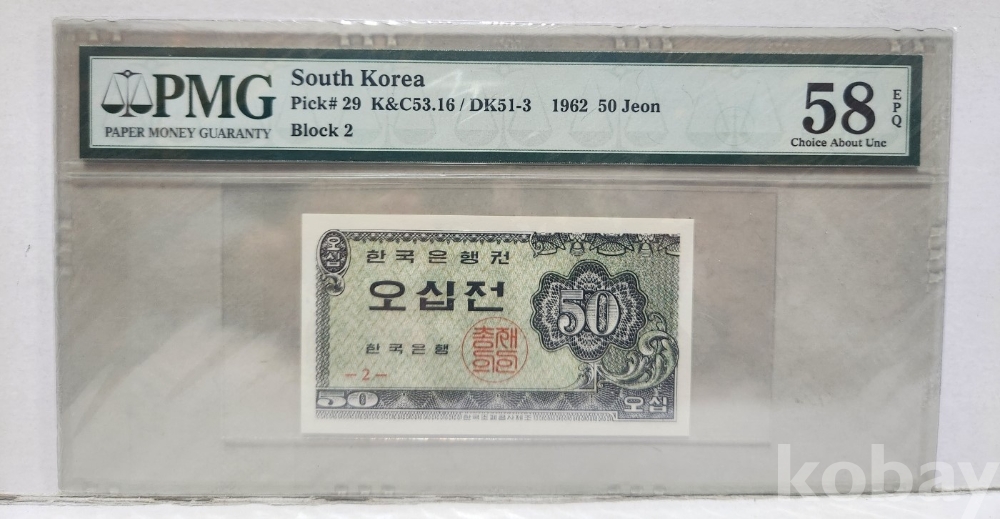 -대한민국 소액 오십전 PMG 58 등급이며 그레이딩 입니다.