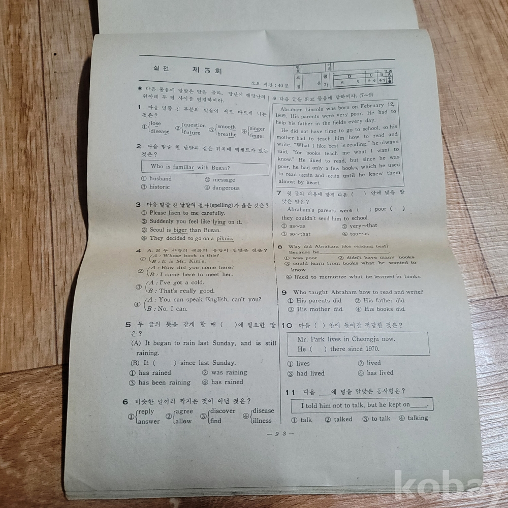 교육자료 78학년도 입시 요가에 따른 고입합격 선발고사 대비 영어 예상문제집 민중서관