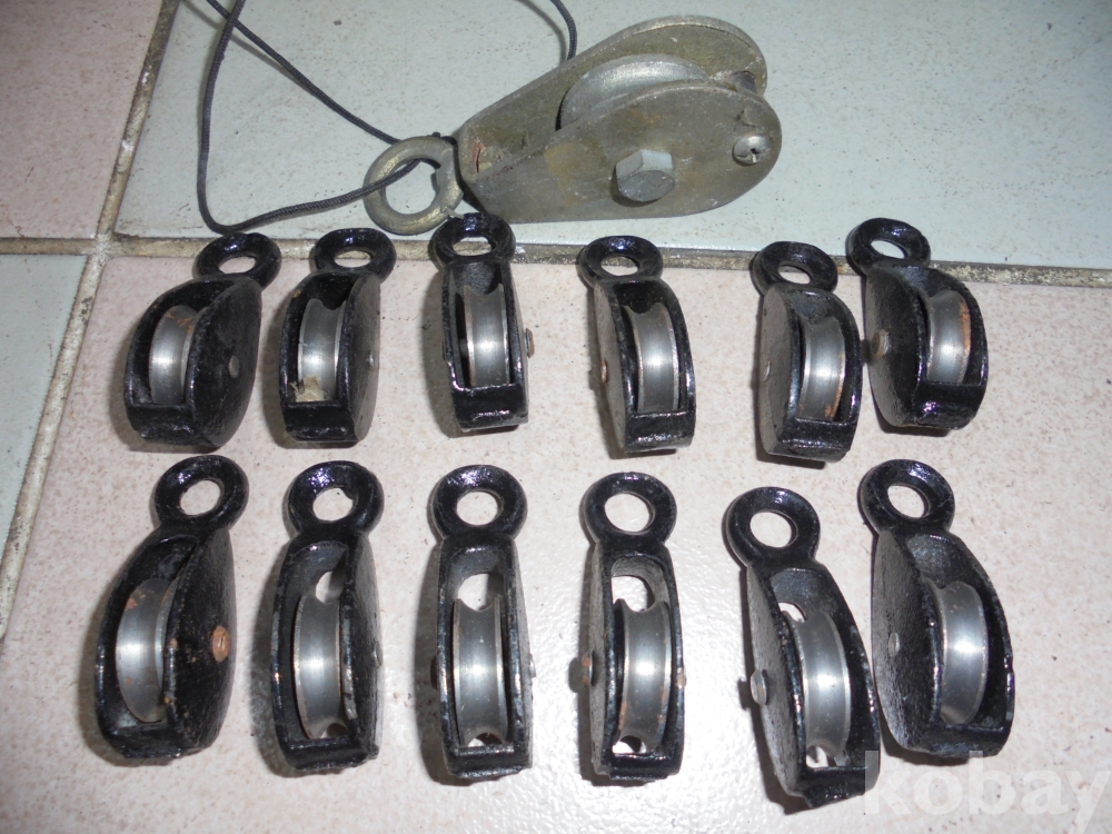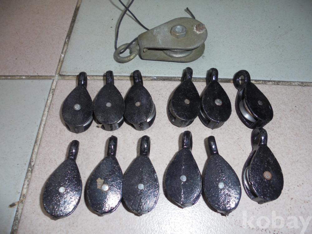 새것인 무쇠로만든 고리달린 작은도르래 12점과 특수강으로만든 고리달린 조금큰 도르래 1점 총 13점