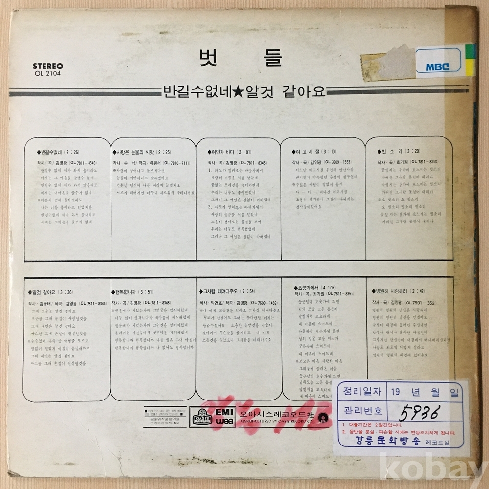 . 가요음반 대부분은 휘어짐이나 손상을 방지하기 위해 무지싱글자킷을 하나 더 사용하여 보관되었던 음반들입니다.