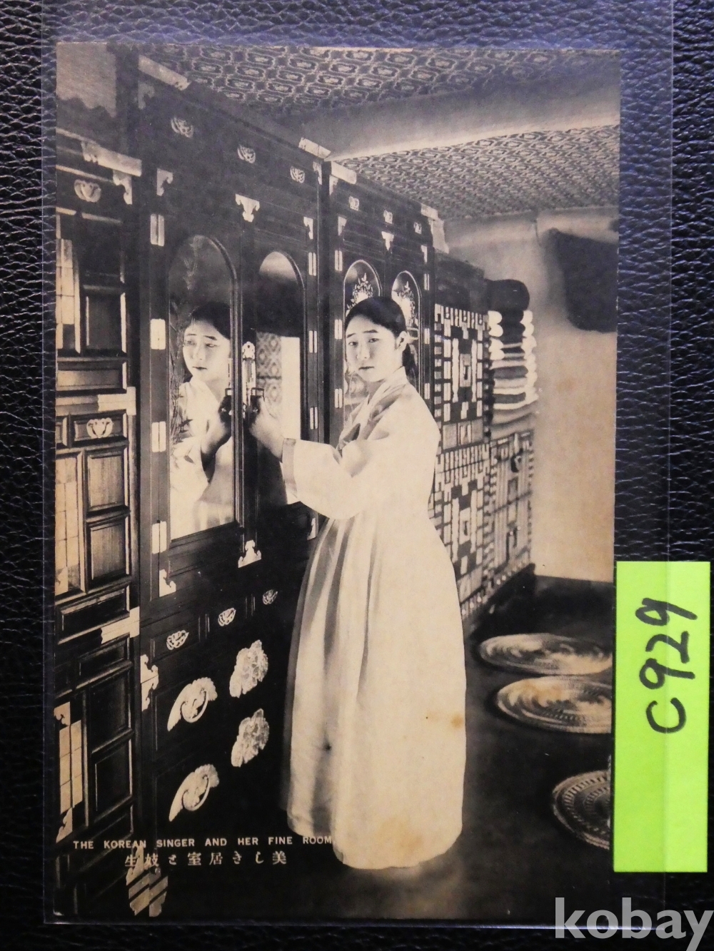 ▣한국근대엽서(진본): 아름다운 조선 기생이 거울 앞에 있는 모습/1매/역사자료, 일제시대, 일제강점기 사진엽서,그림엽서,회엽서. C929