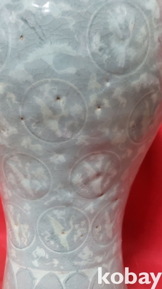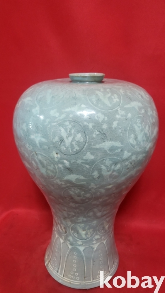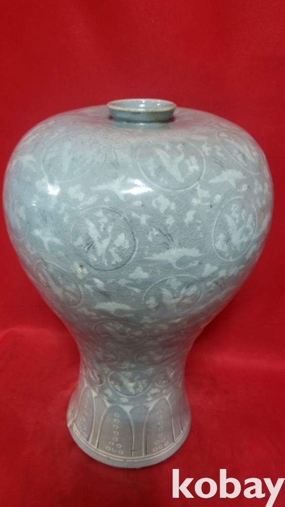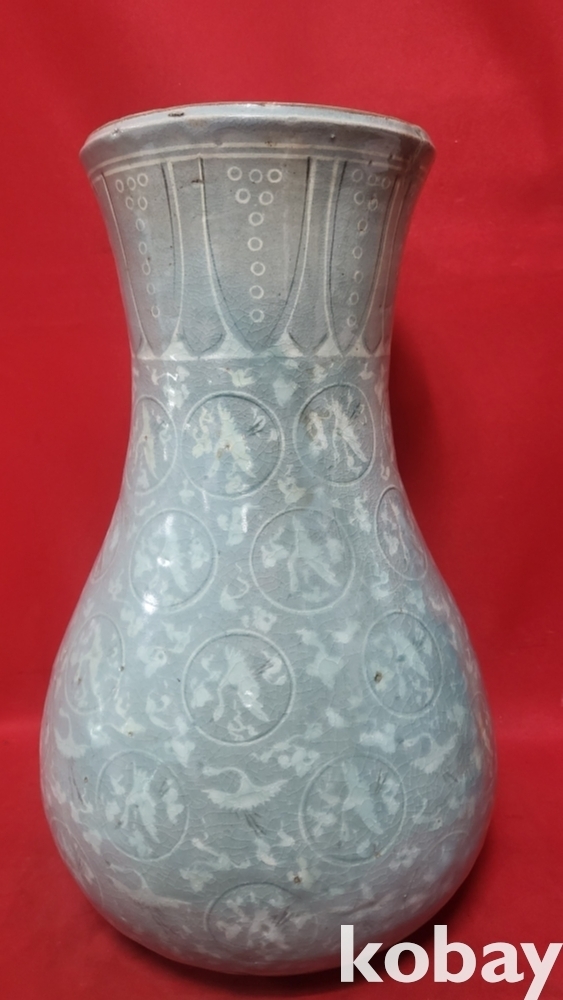 인간문화재 도예가 도암 지순탁(진품보장) 상감 운학문으로 초대형 급(45.3cm) 매병입니다,