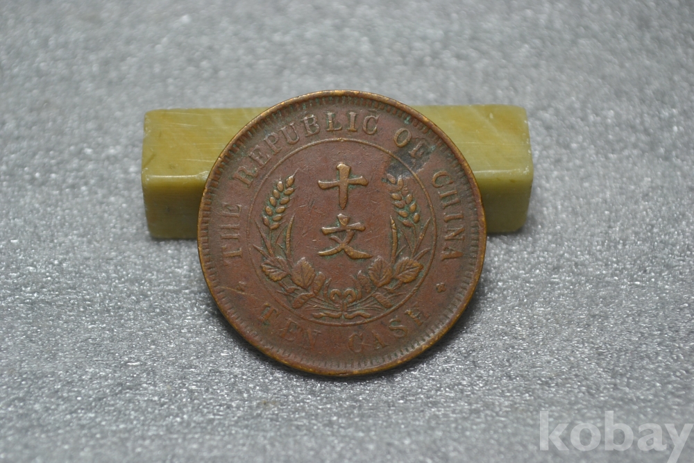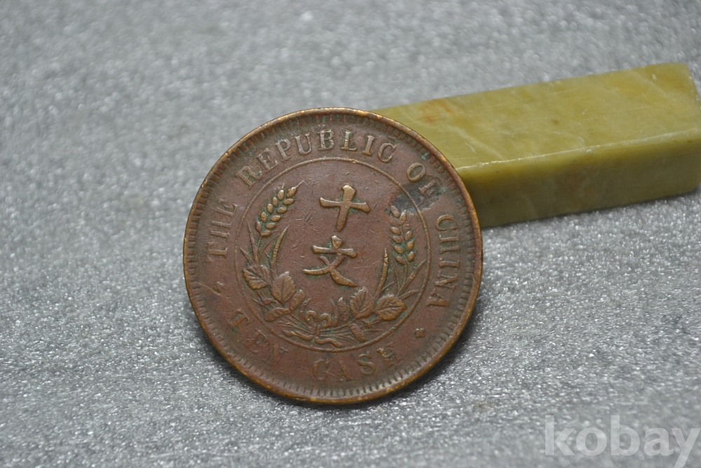 28 mm 큰지름의 " 중화민국 중국동폐(쌍기) 개국기념폐 TEN CASH~ 쌍기 10문 " 중국동폐 입니다.