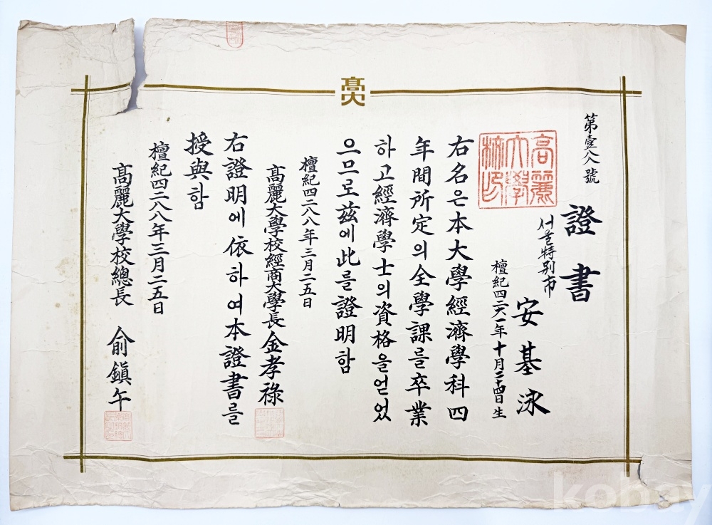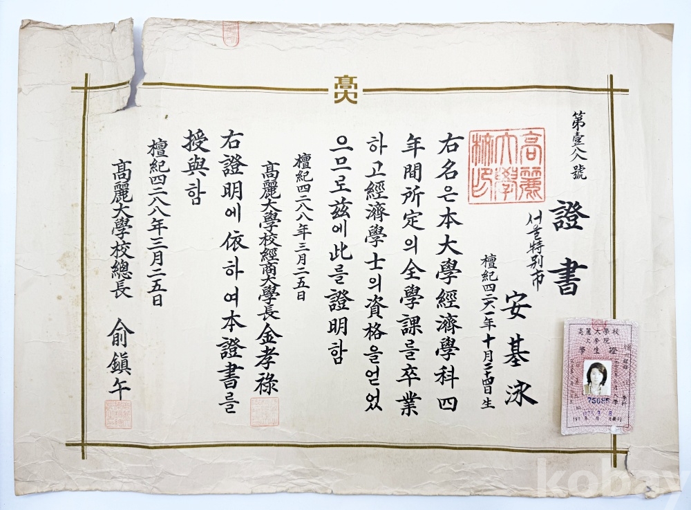 상품명 | 고려대학교 졸업증서와 대학원 학생증 등 ‘고려대학교 자료’ 2점 일괄 | ||