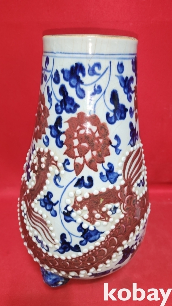 붉은 홍용의 테두리에는 엠보싱 현상으로 멋을 살린 기물입니다,