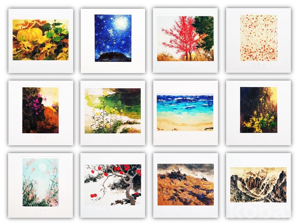 일반 옵셋인쇄와 달리 특수판화인쇄기법 인쇄로 원화의 색감을 그대로 재현하고자 2~30가지색을 덧찍어 실제작품과 같은 질감을 살려 일반인쇄와 비교가 되지 않는.최상의 퀄리티로 제작하였습니다