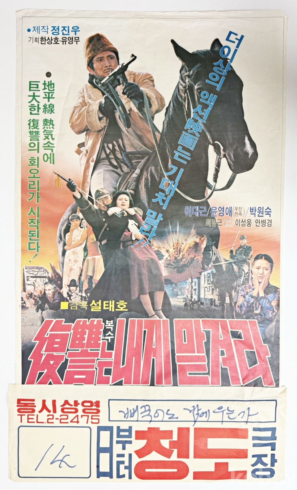 상품 설명 | 일제강점기를 배경으로 한 영화 '복수는 내게 맡겨라'의 포스터 이다. 당시 청도극장 상영 포스터이다. | ||