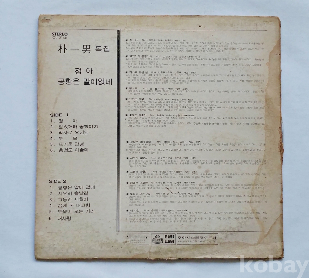 EX : 약간의 마모, 모서리 찢김 존재 음반상태