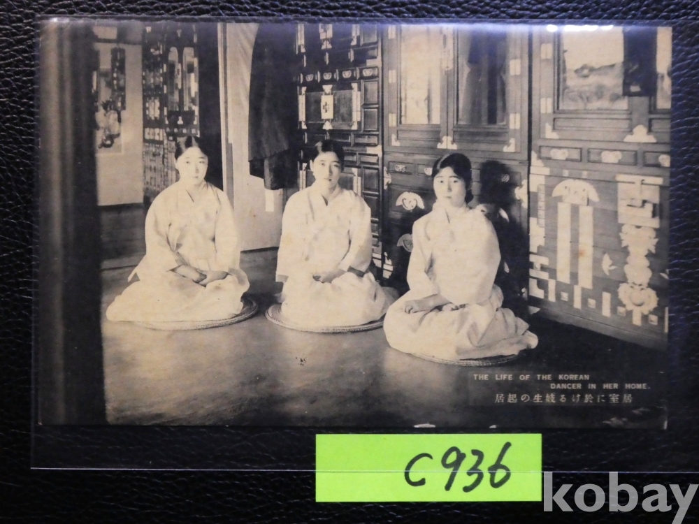 ▣한국근대엽서(진본): 기생들이 기거하는 거실의 모습과 기생 3인, 대정사진공예소 발행/1매.