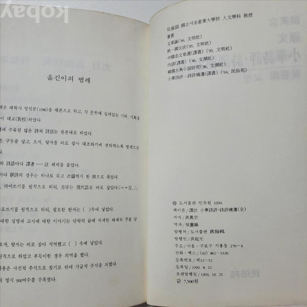 [희귀본] 역주 소화시평 시평보유 (전) ; 2권 세트, 민속원 발행, 중급 (양호) / 서고B105