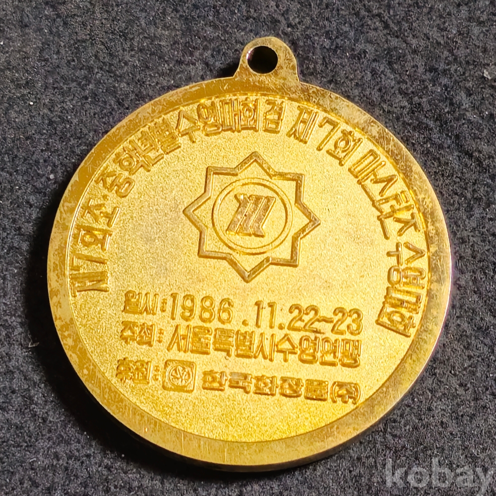 (((근현대사자료/메달))) 제7회 초.중학년별수영대회겸 제7회 마스터즈 수영대회기념 메달 (1986년 서울특별시 수영연맹)